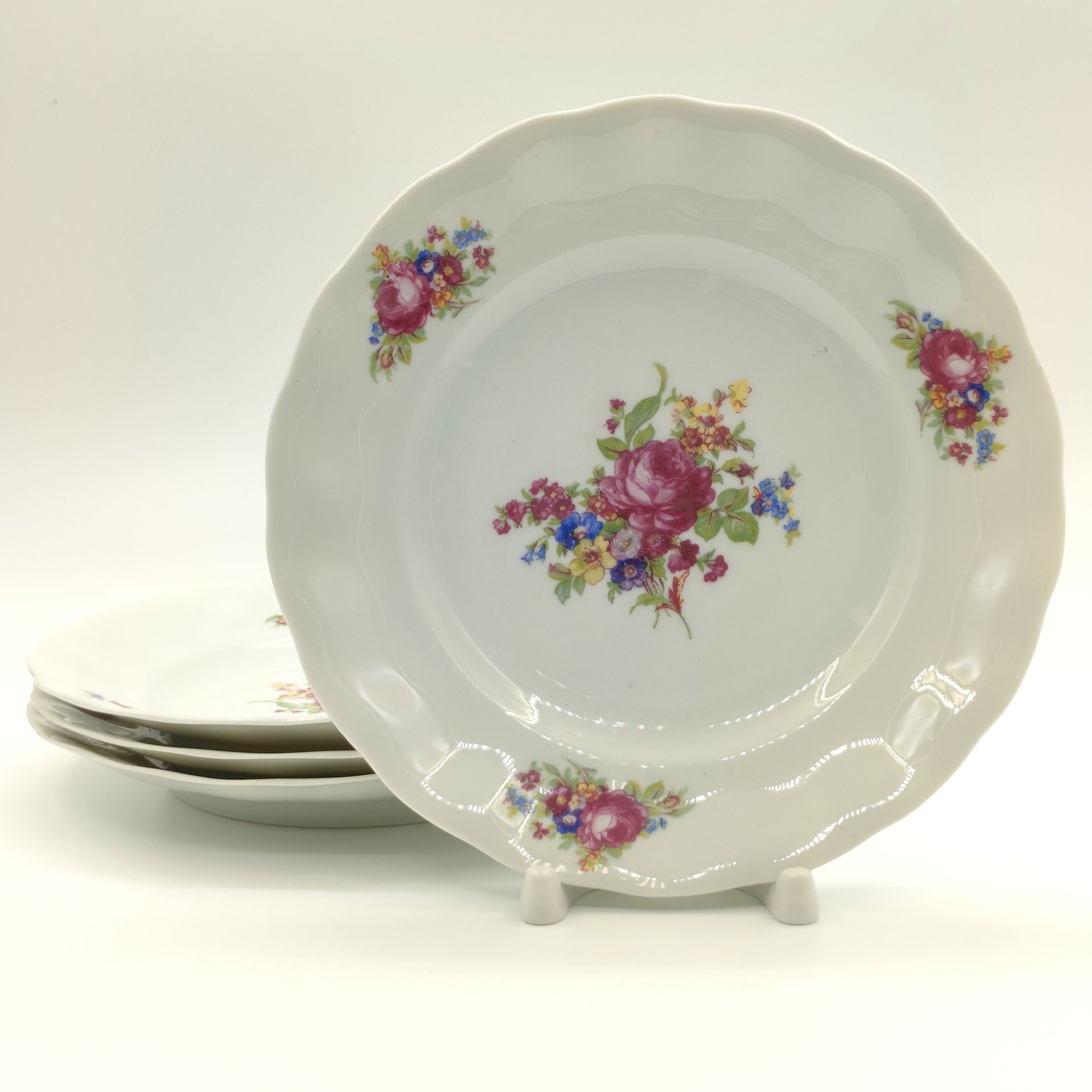 Купить Набор из 6-ти десертных тарелок, украшенных цветочным декором, фарфор, деколь, Фабрика князя Друцкого-Любецкого в Цмелеве, Российская империя, 1888-1917 гг.