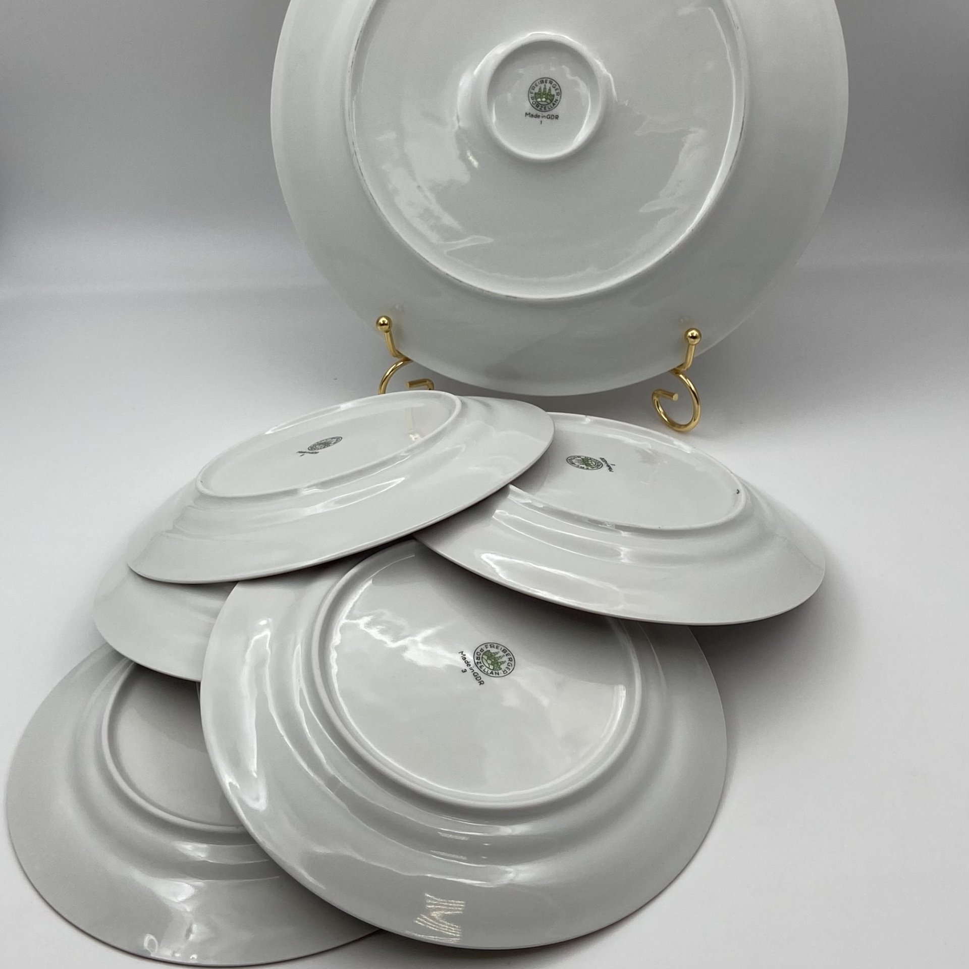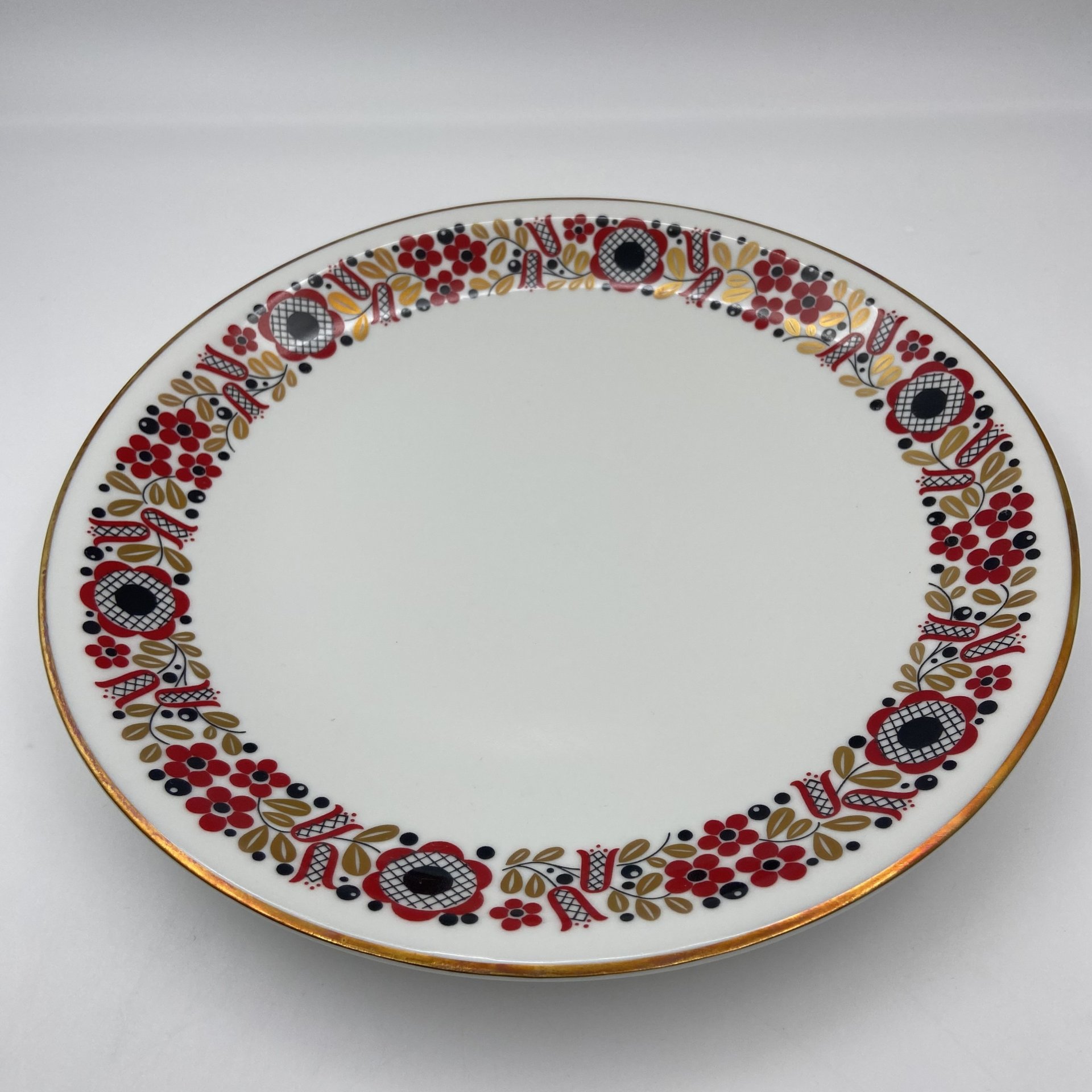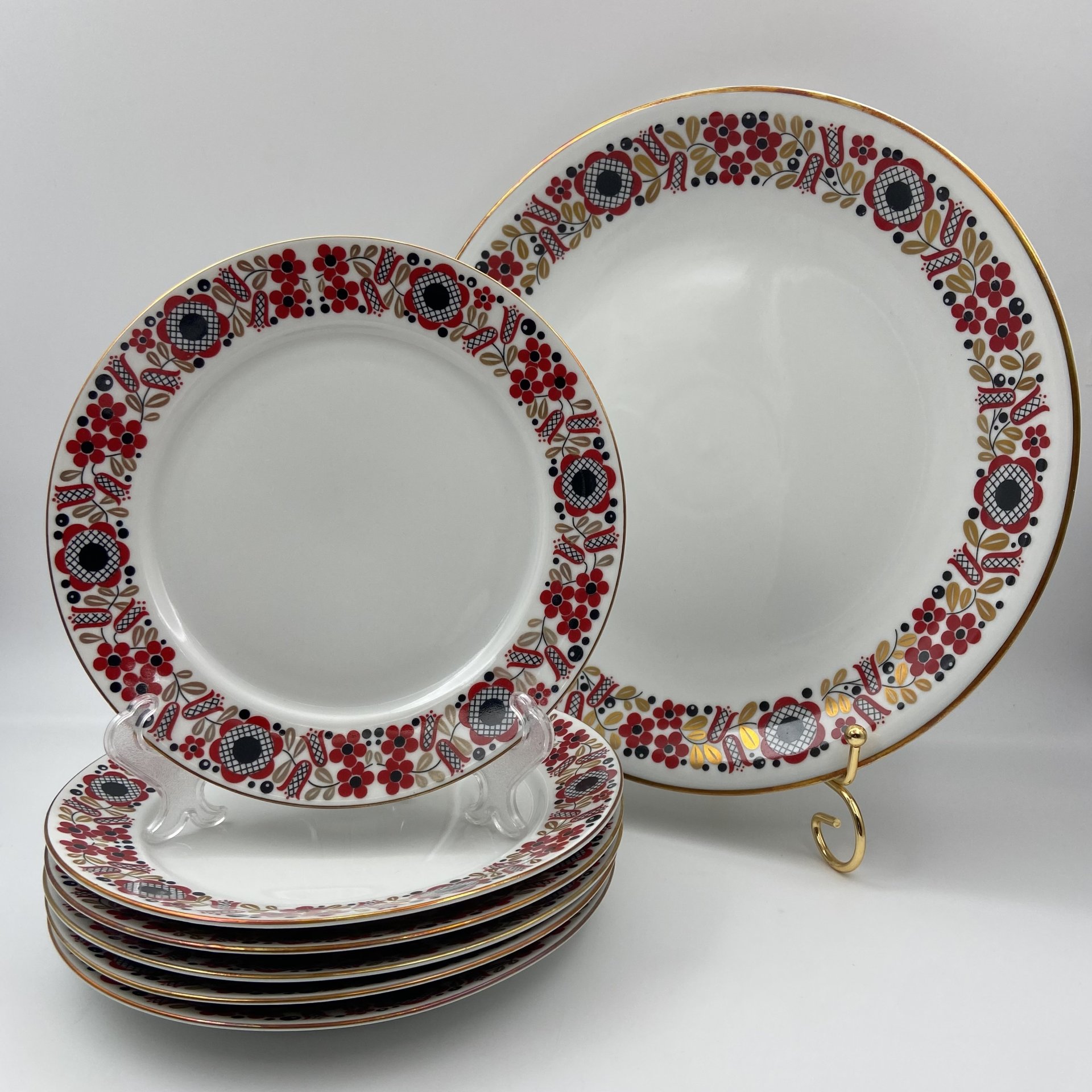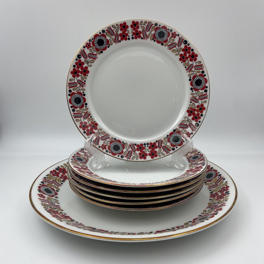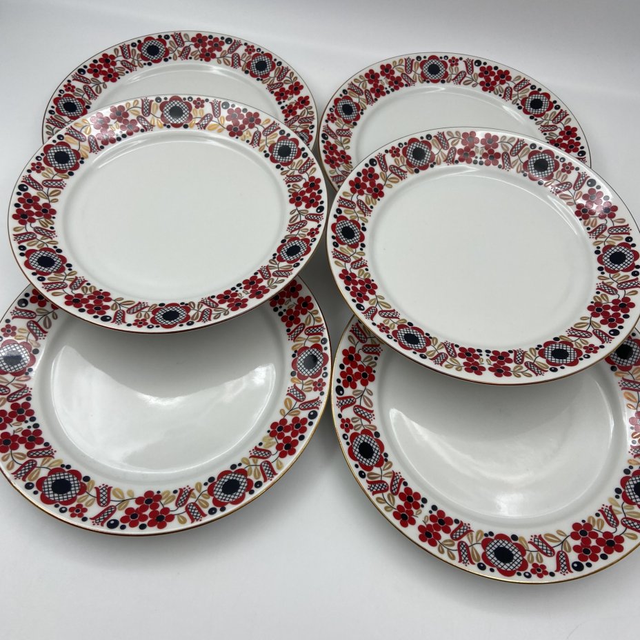Набор из 6-ти десертных тарелок, украшенных цветочным орнаментом, фарфор, крытье, золочение, Ленинградский фарфоровый завод (ЛФЗ), Россия, 1960-1969 гг.