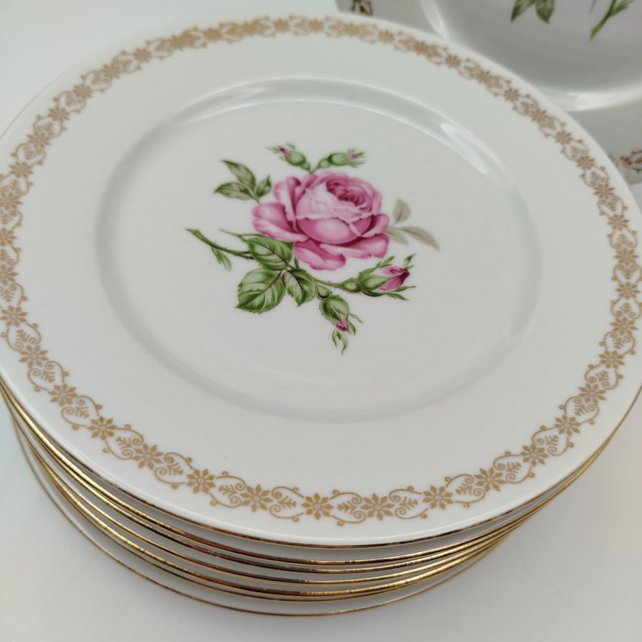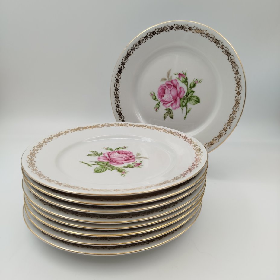 Набор из девяти десертных/закусочных тарелок с декором в виде роз, фарфор, деколь, золочение, Moritz Zdekauer (MZ), Чехословакия, 1960-1990 гг.