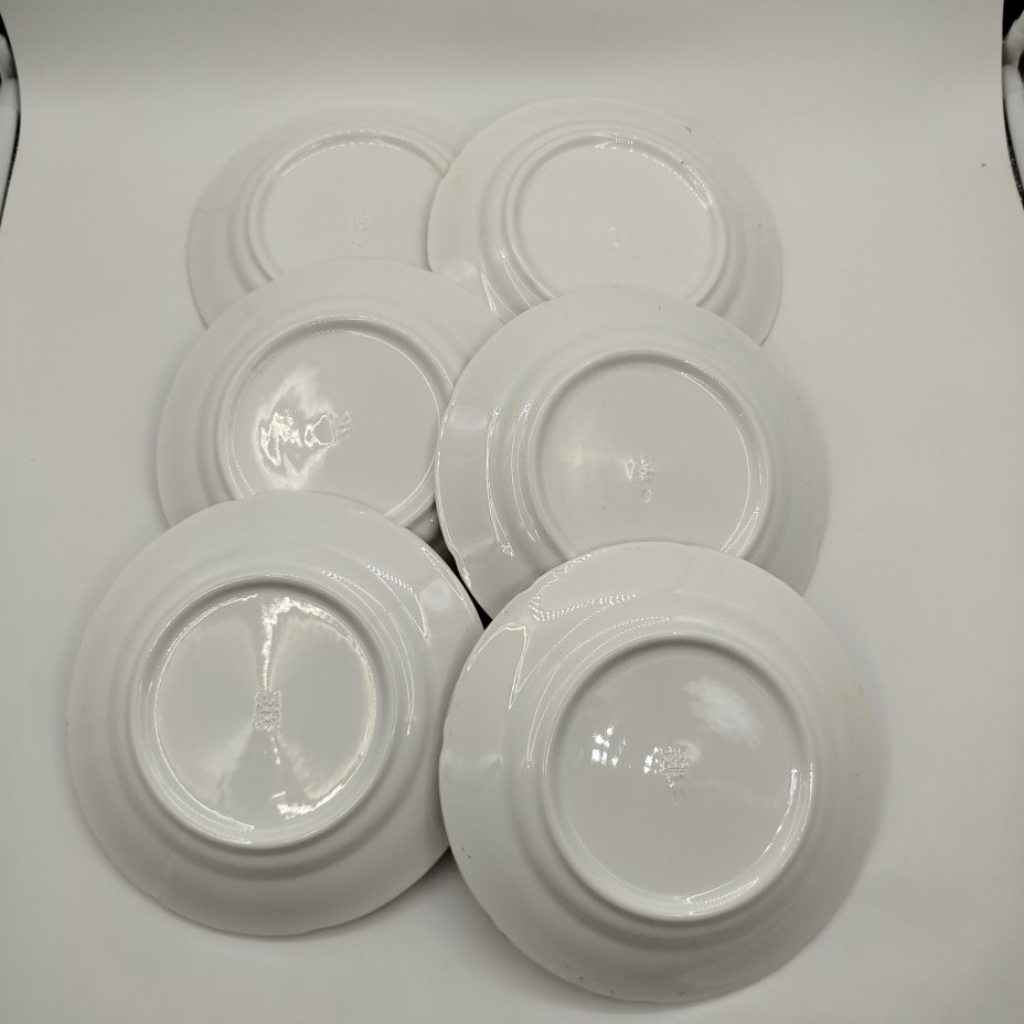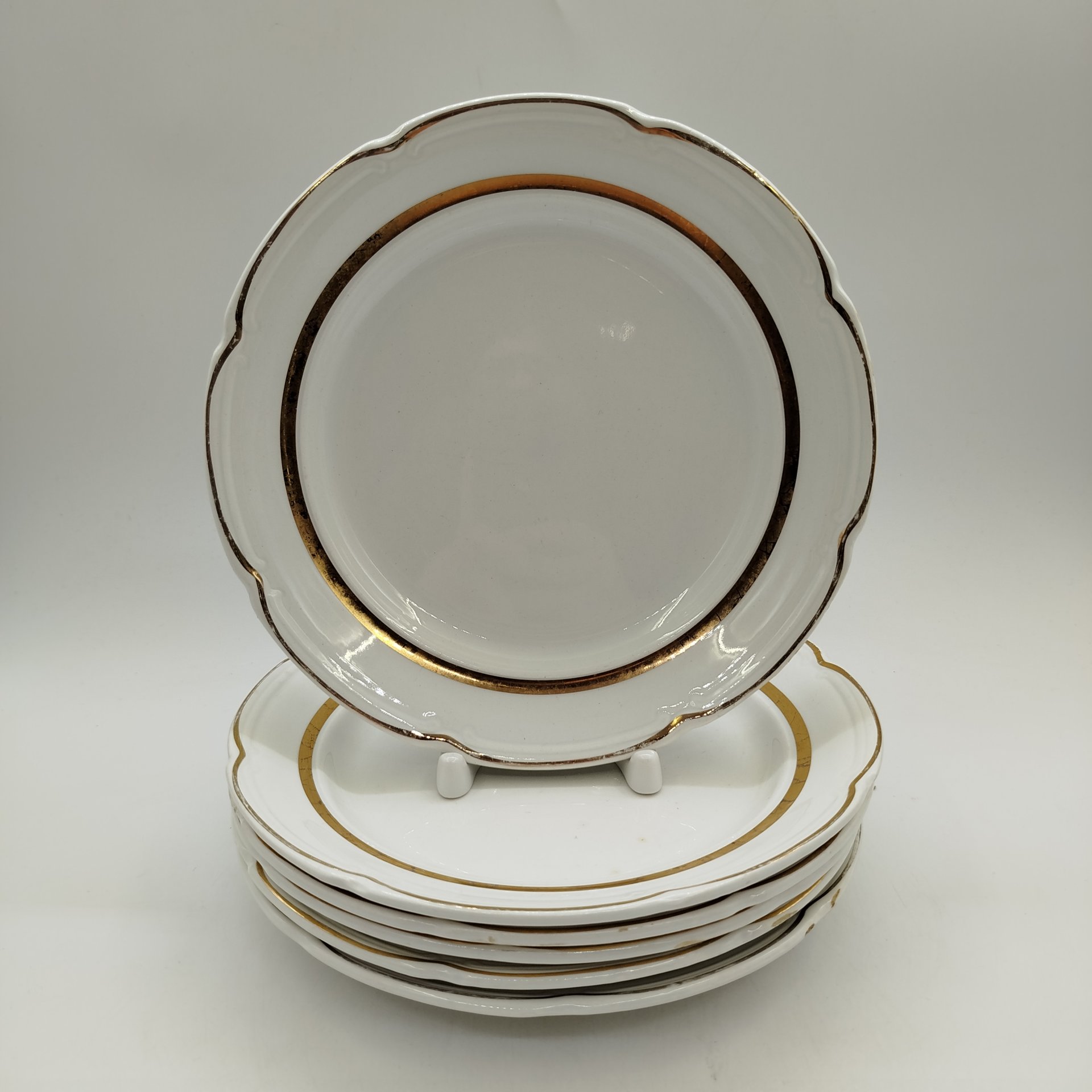 Купить Набор из шести десертных тарелок, фаянс, золочение, Конаковский фаянсовый завод им. М.И. Калинина (ЗиК Конаково), СССР, 1974-1991 гг.