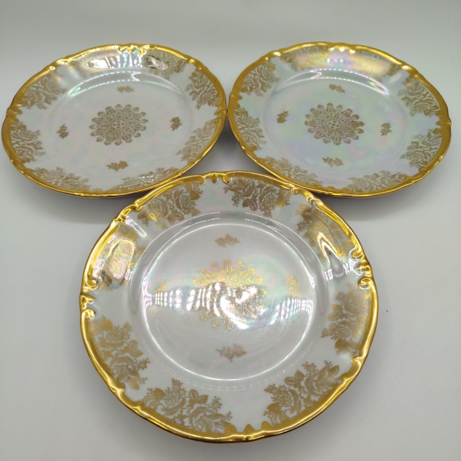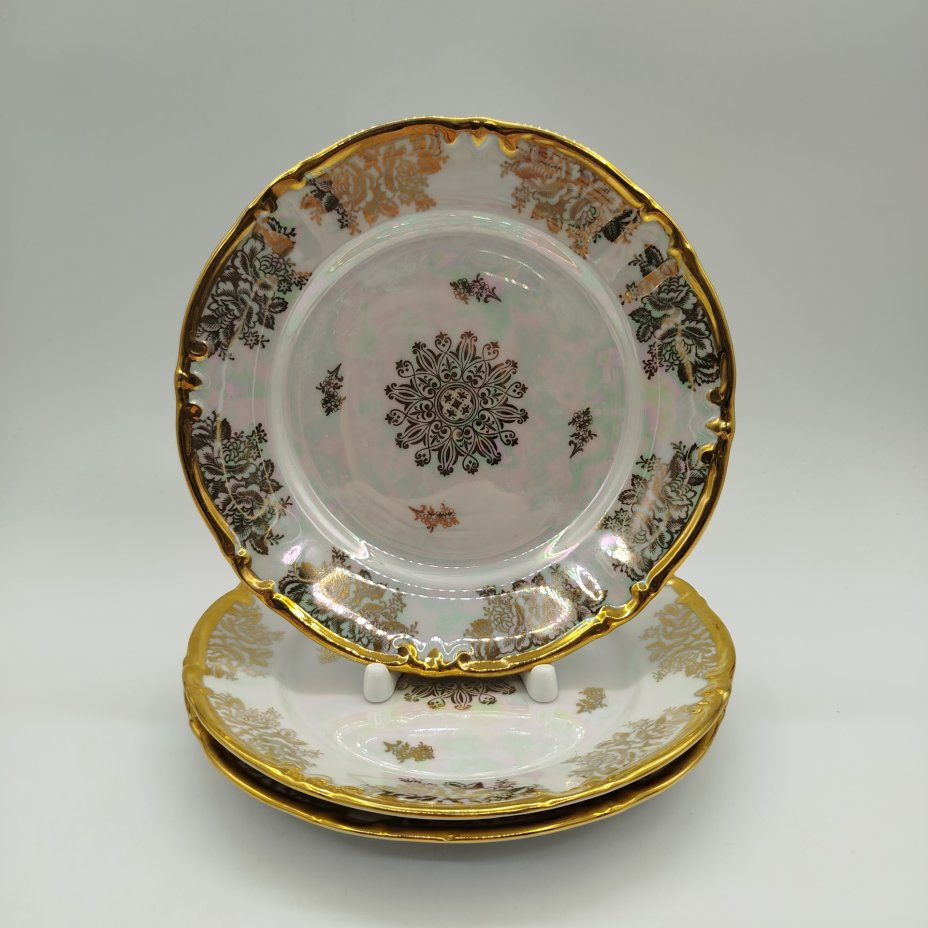 Набор десертных тарелок из сервиза "Роза", фарфор, деколь, золочение, Freiberg Porzellan, Германия, 1957-1972 гг.