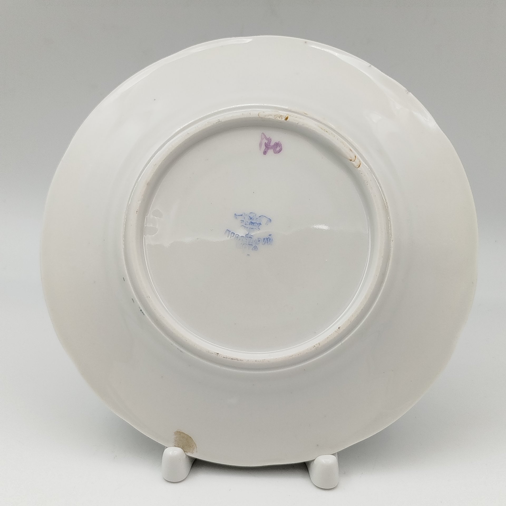 Набор из двух десертных тарелок "Рыбак" и "Ветряная мельница", фарфор, деколь, золочение, Фарфоровый завод «Пролетарий» (Бронница, Мста), СССР, 1927-1930 гг.