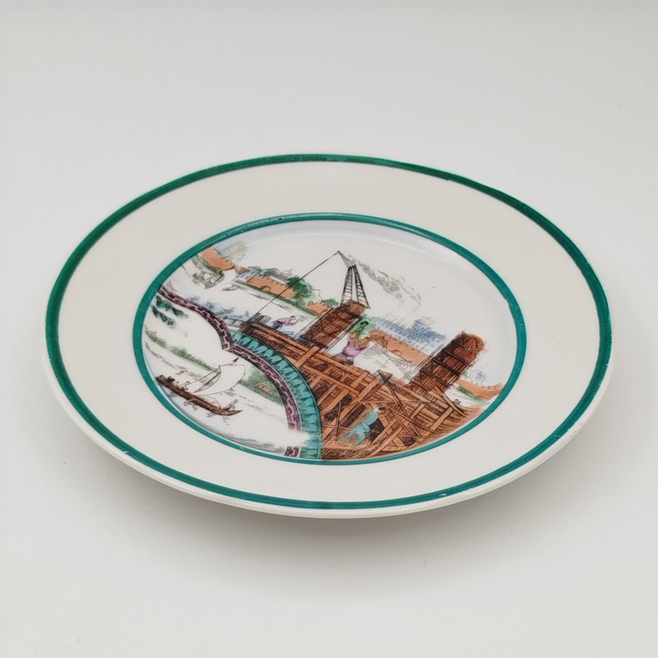 Набор из двух десертных тарелок "Рыбак" и "Ветряная мельница", фарфор, деколь, золочение, Фарфоровый завод «Пролетарий» (Бронница, Мста), СССР, 1927-1930 гг.