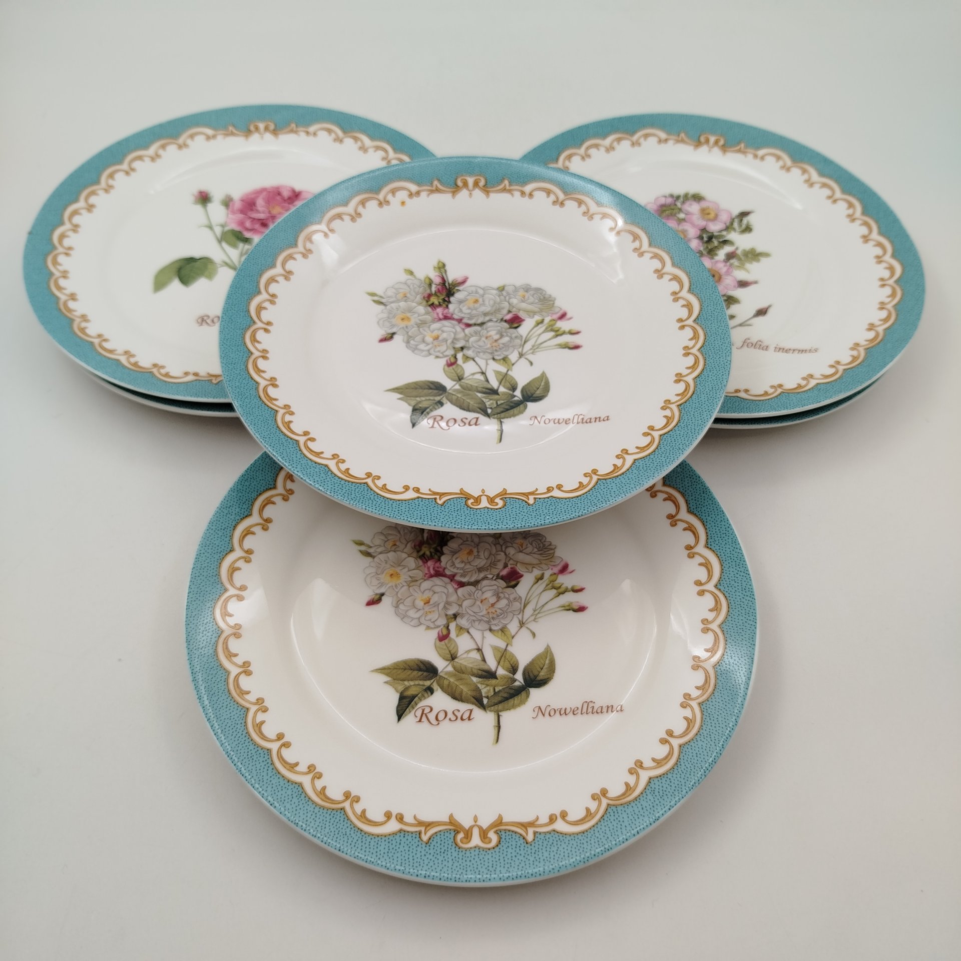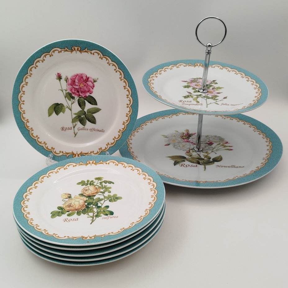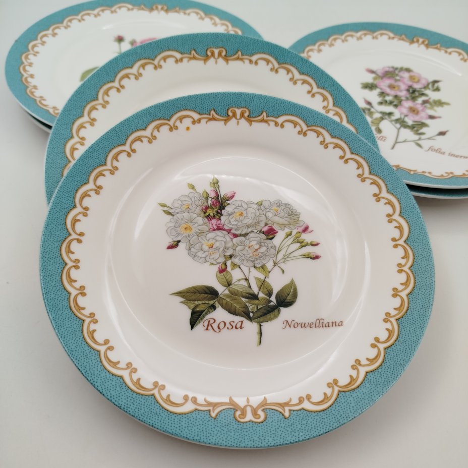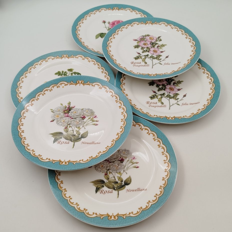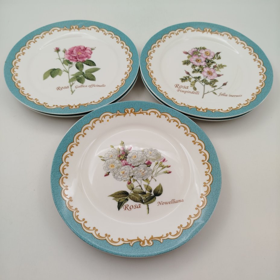 Набор из 6-ти десертных тарелок с цветочным декором, "Gebrüder Benedikt", фарфор, деколь, золочение, Чехословакия, 1960-1990 гг.