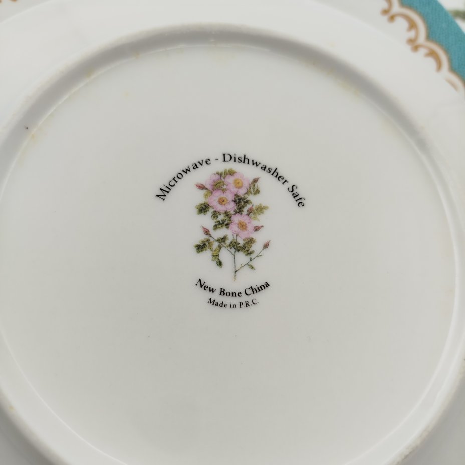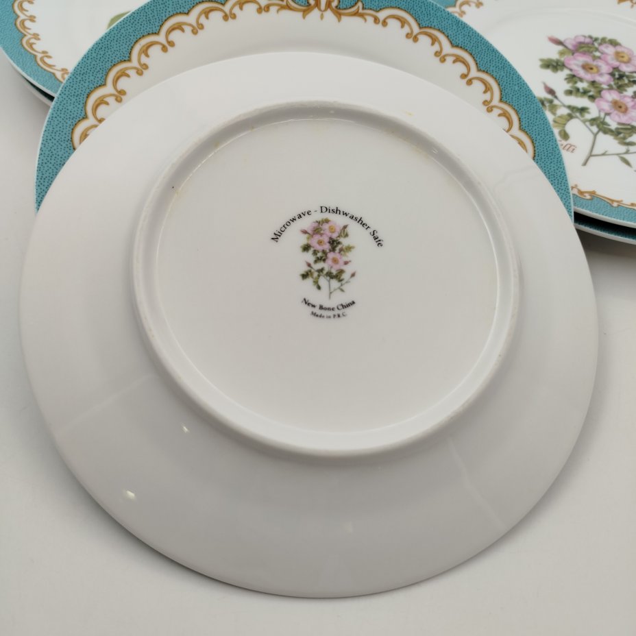 Набор обеденных тарелок на 4 персоны, украшенных цветочным декором, Фаянсовая фабрика "Franz Anton Mehlem", фаянс, роспись, золочение, Германия, 1900-1920 гг.