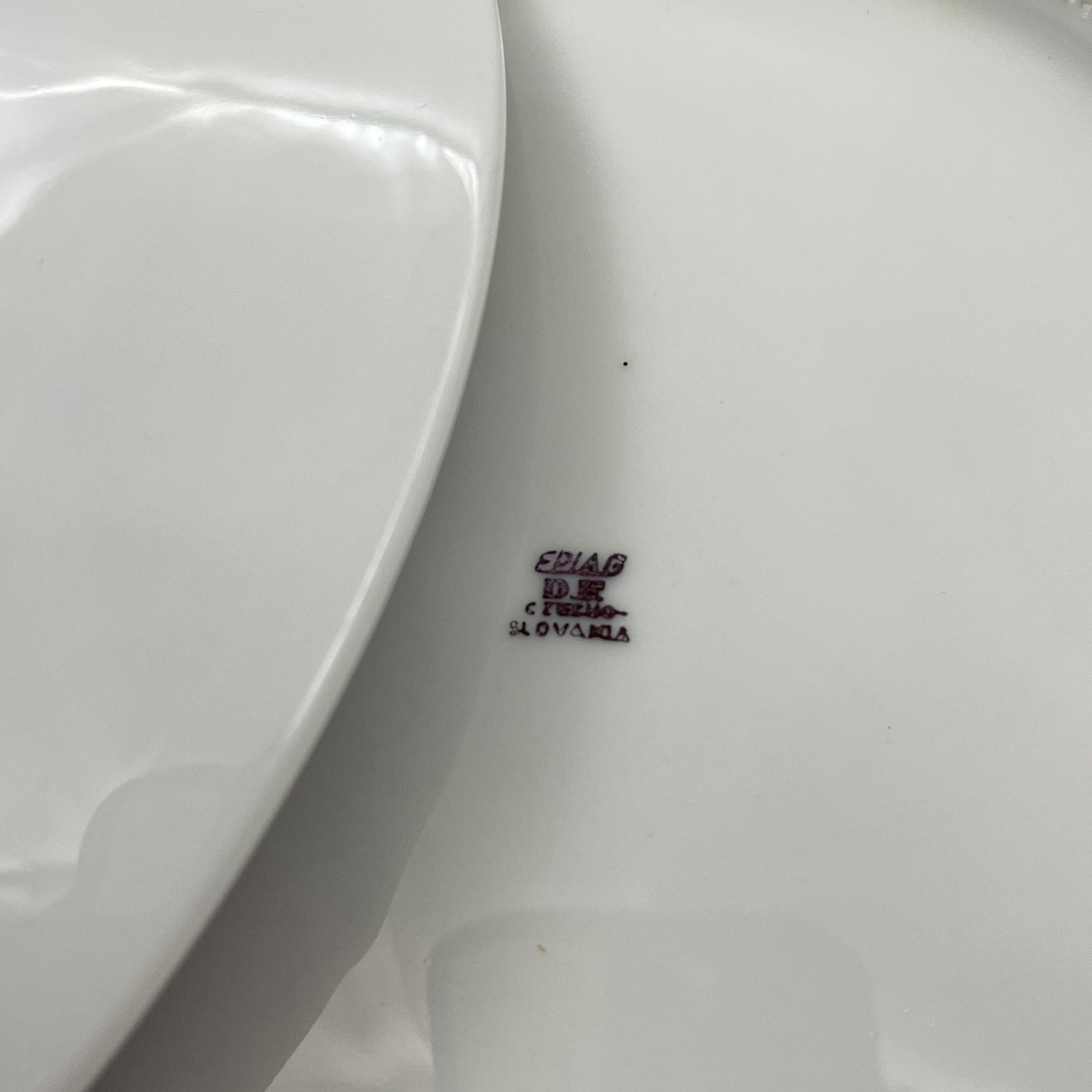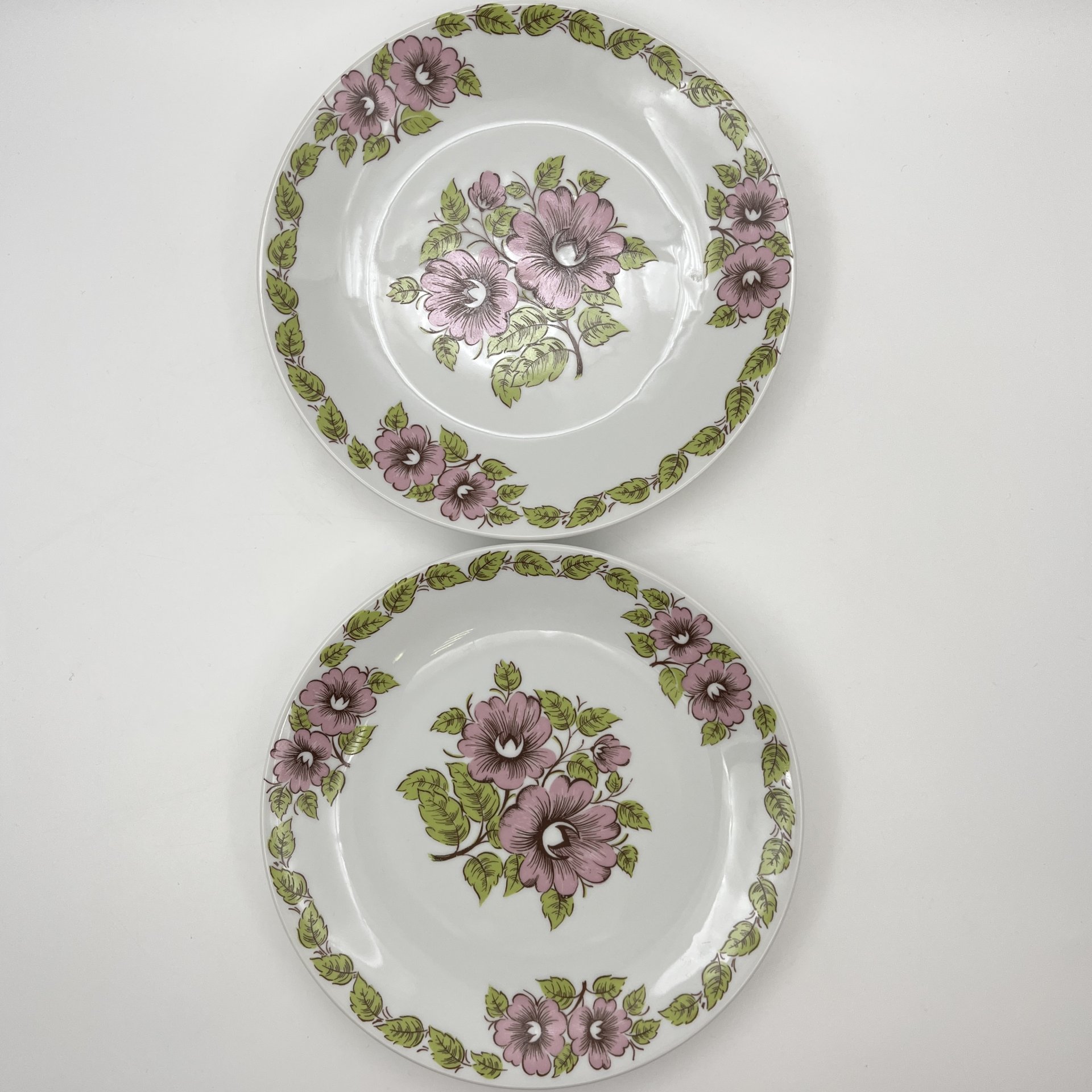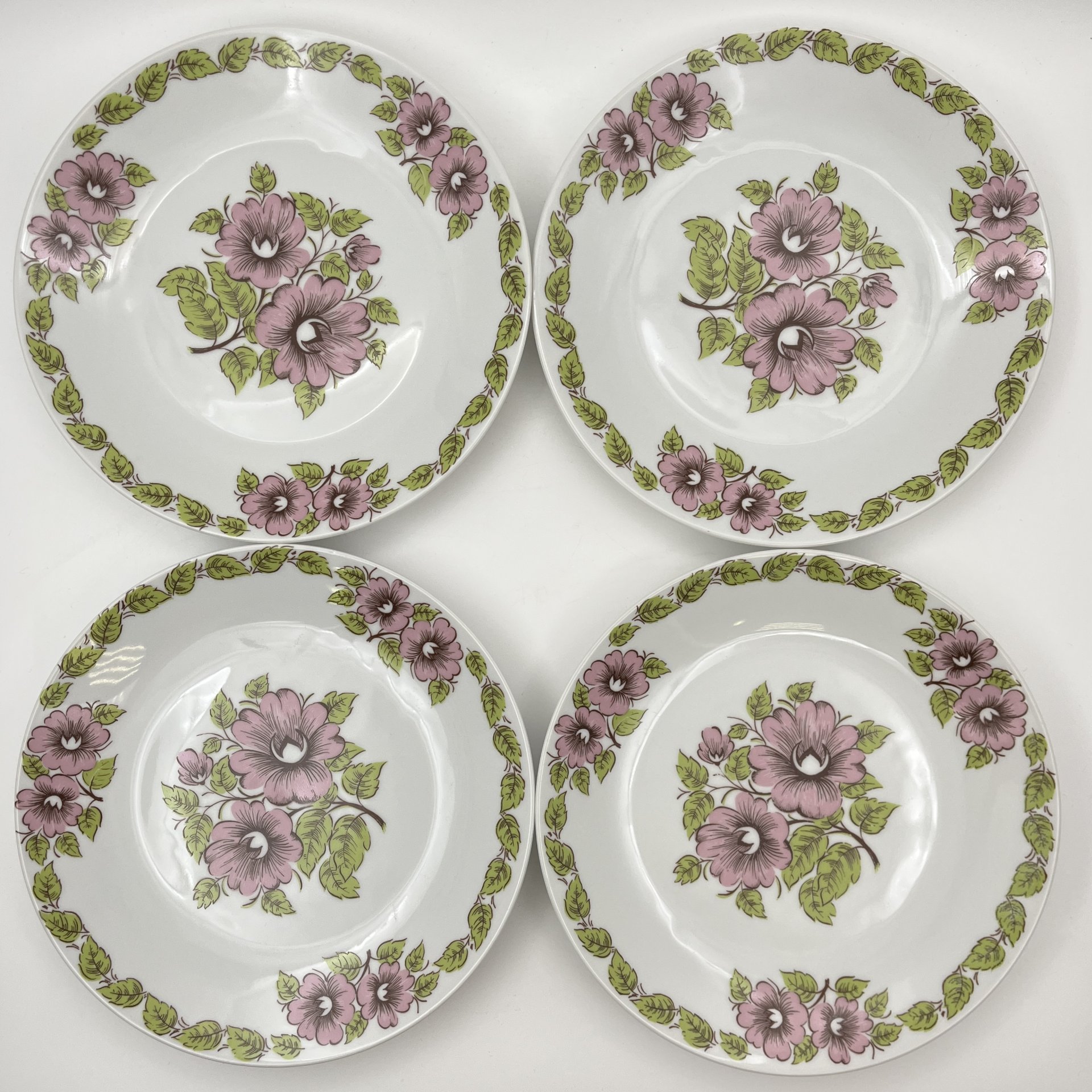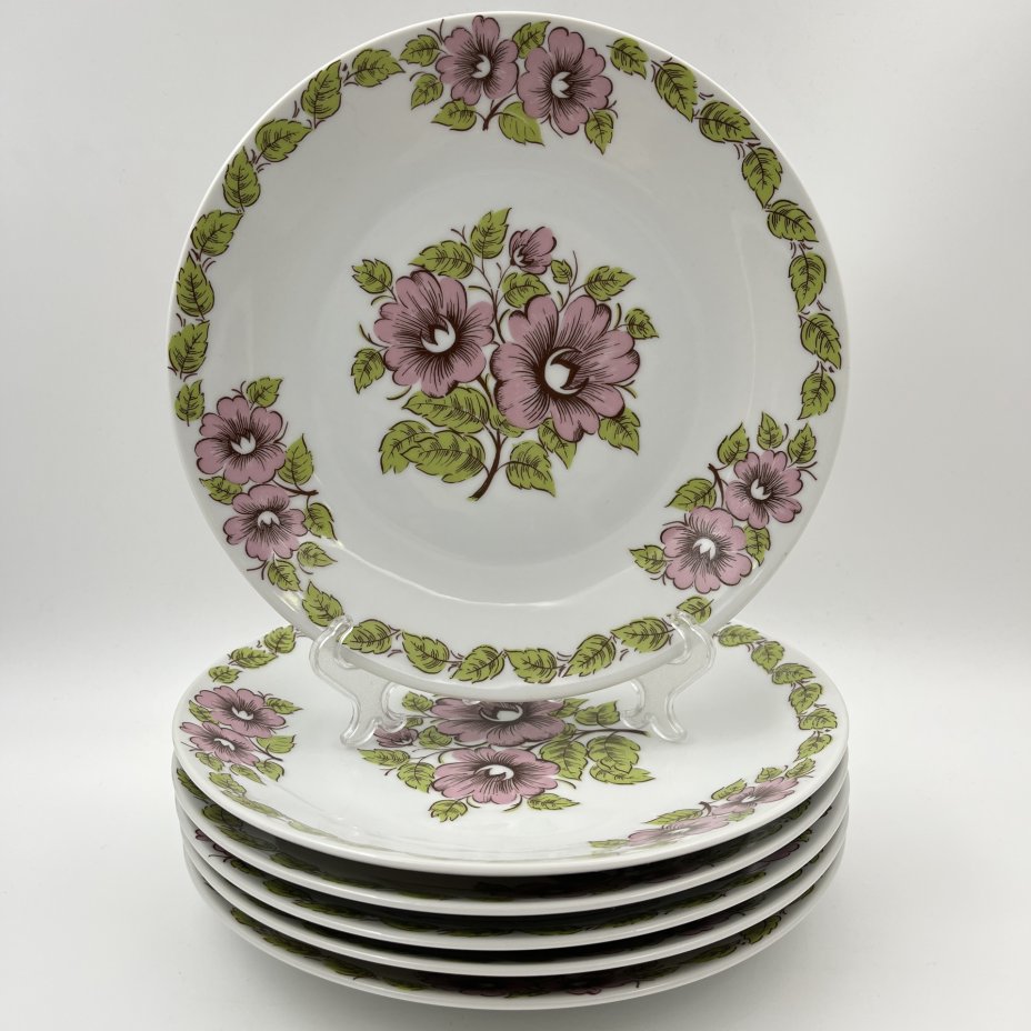 Набор из 5-ти суповых тарелок с цветочным декором и рельефным бортом, фарфор, деколь, золочение, Kahla, Германия, 1937-1956 гг.