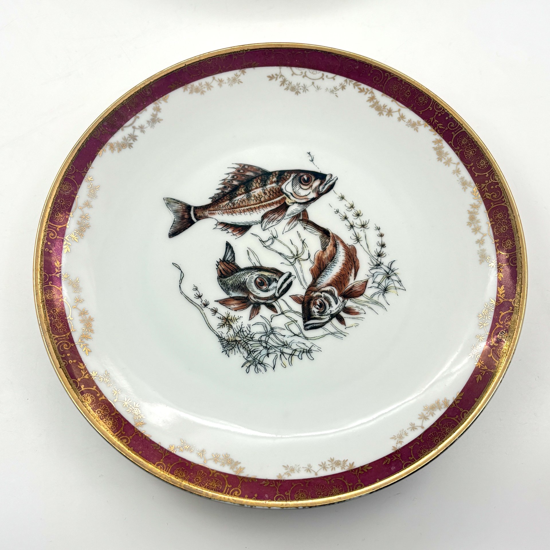 Набор из шести пирожковых тарелок с цветочным декором золотистого цвета, фарфор, деколь, золочение, Graf Von Henneberg Porzellan, 1777 Jlmenau, ГДР, 1973-1977 гг.