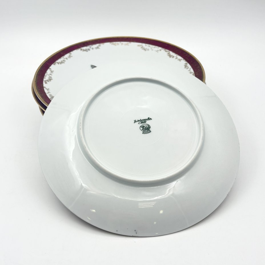 Набор из 5-ти суповых тарелок с цветочным декором и рельефным бортом, фарфор, деколь, золочение, Kahla, Германия, 1937-1956 гг.