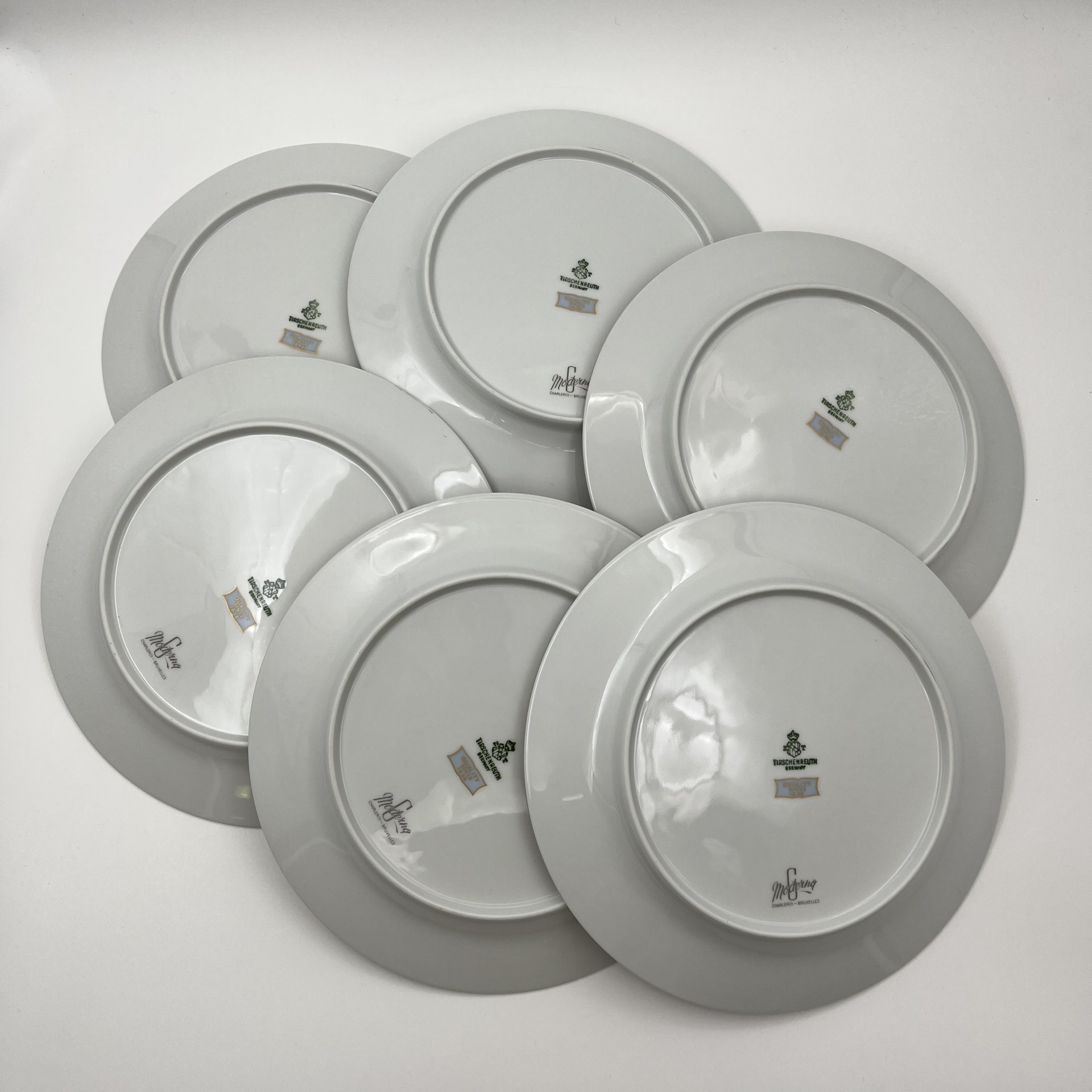 Купить [редкая марка] Набор тарелок (4 столовых, 2 десертных, 2 закусочных), фаянс, крытье, деколь с подрисовкой, Товарищество М.С. Кузнецова в Дрейлингсбуше (K.P.M. Dreylingsbusch), Российская империя, 1889-1917 гг.