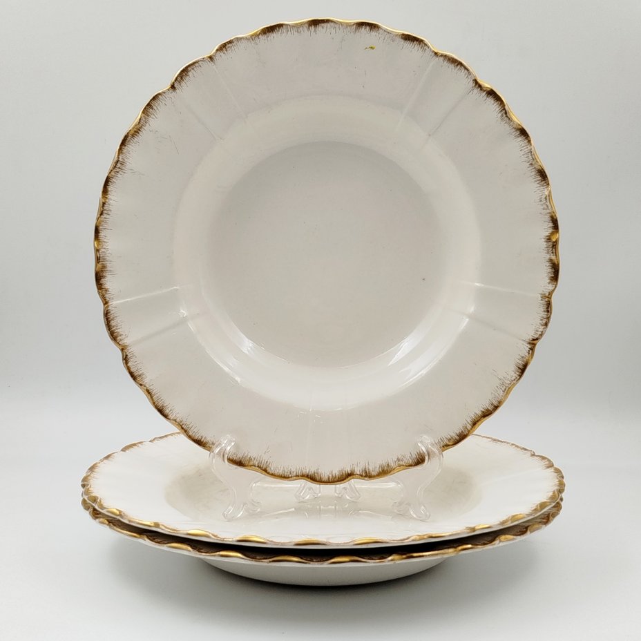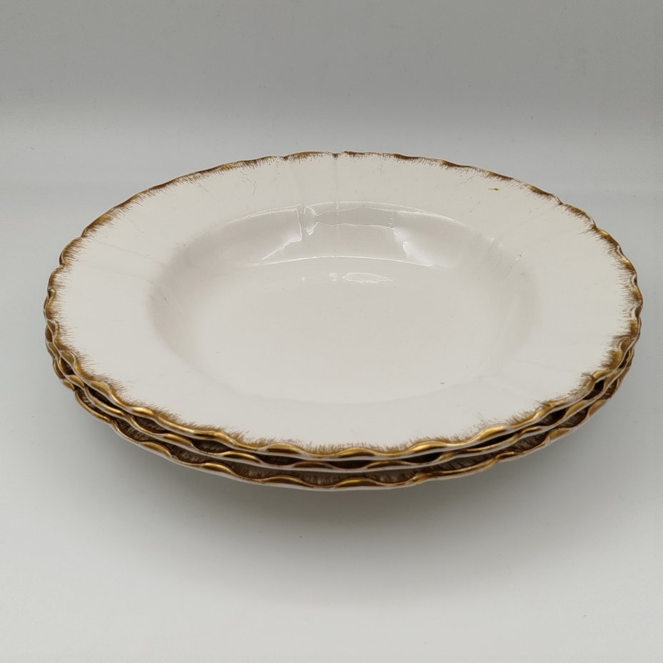 Купить Пара обеденных тарелок с золотистой каймой, фаянс, золочение, Тверская Госфабрика в Кузнецове Тверской губернии, СССР, 1920-1927 гг.