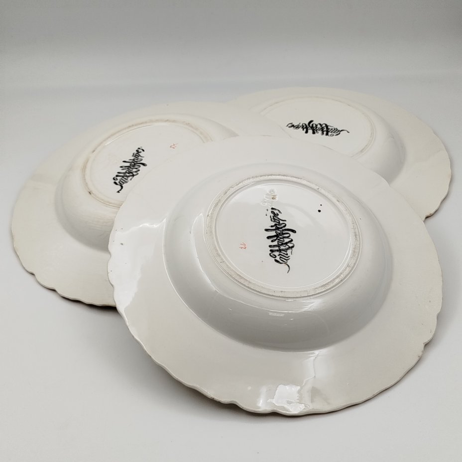 Пара обеденных тарелок с цветочным декором и фигурным краем, фаянс, деколь, золочение, Песоченская фабрика Брянской губернии, СССР, 1924-1930 гг.