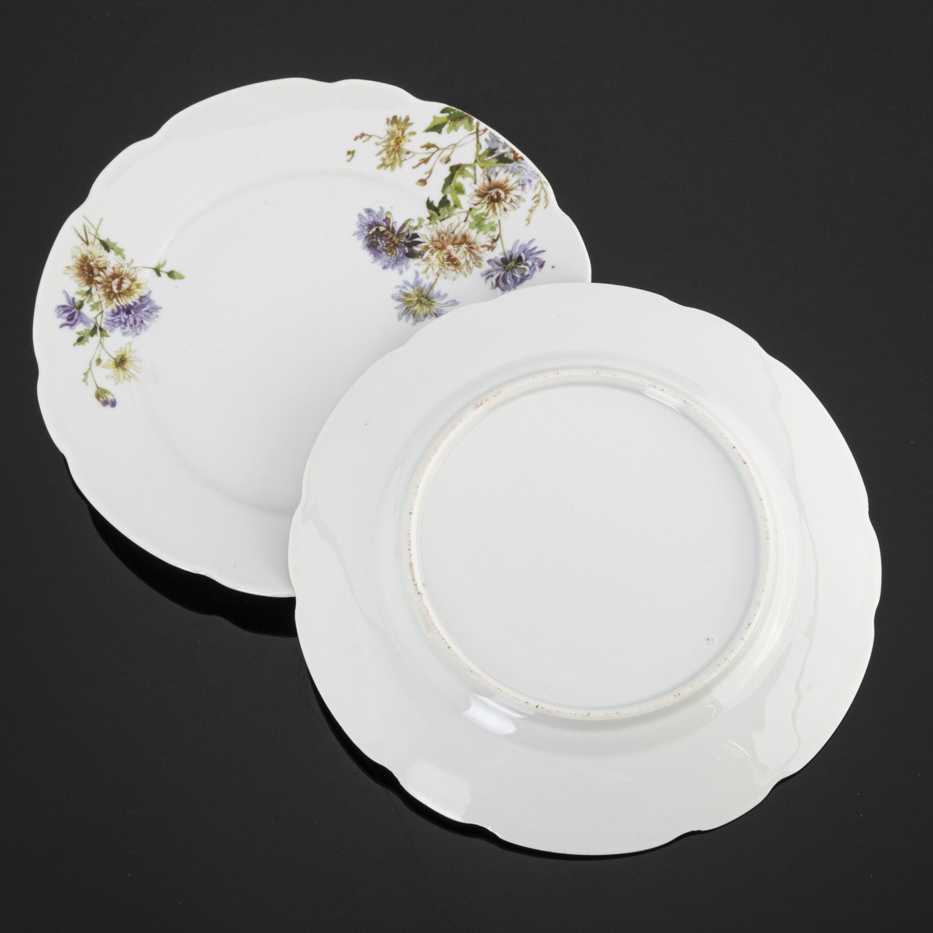 Тарелка обеденная с цветочным декором, Leopold Czamanski & Co, Wloclawek N.W.F.F. (Новая Влоцлавская Фабрика Фаянса Леопольда Чаманского), фаянс, деколь c подрисовкой, Польша, 1891-1923 гг.