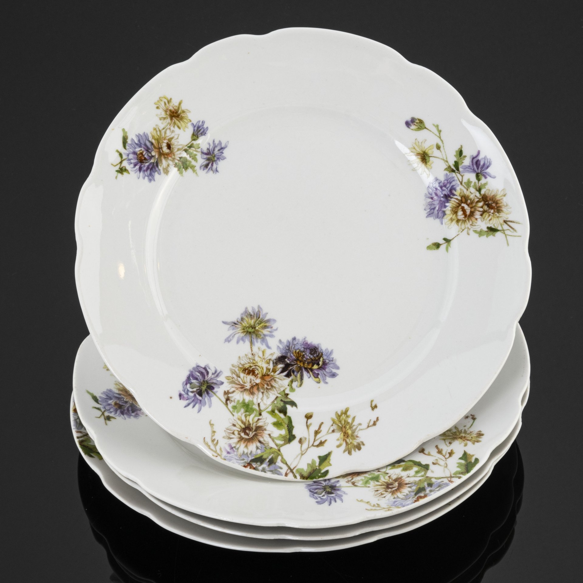 Набор из 3-х обеденных тарелок с цветочным декором (в подборе), росп. Шевякова, Добрынина, Родина, фарфор, роспись, Гжельский фарфоровый завод, Российская Федерация, 1991-2015 гг.