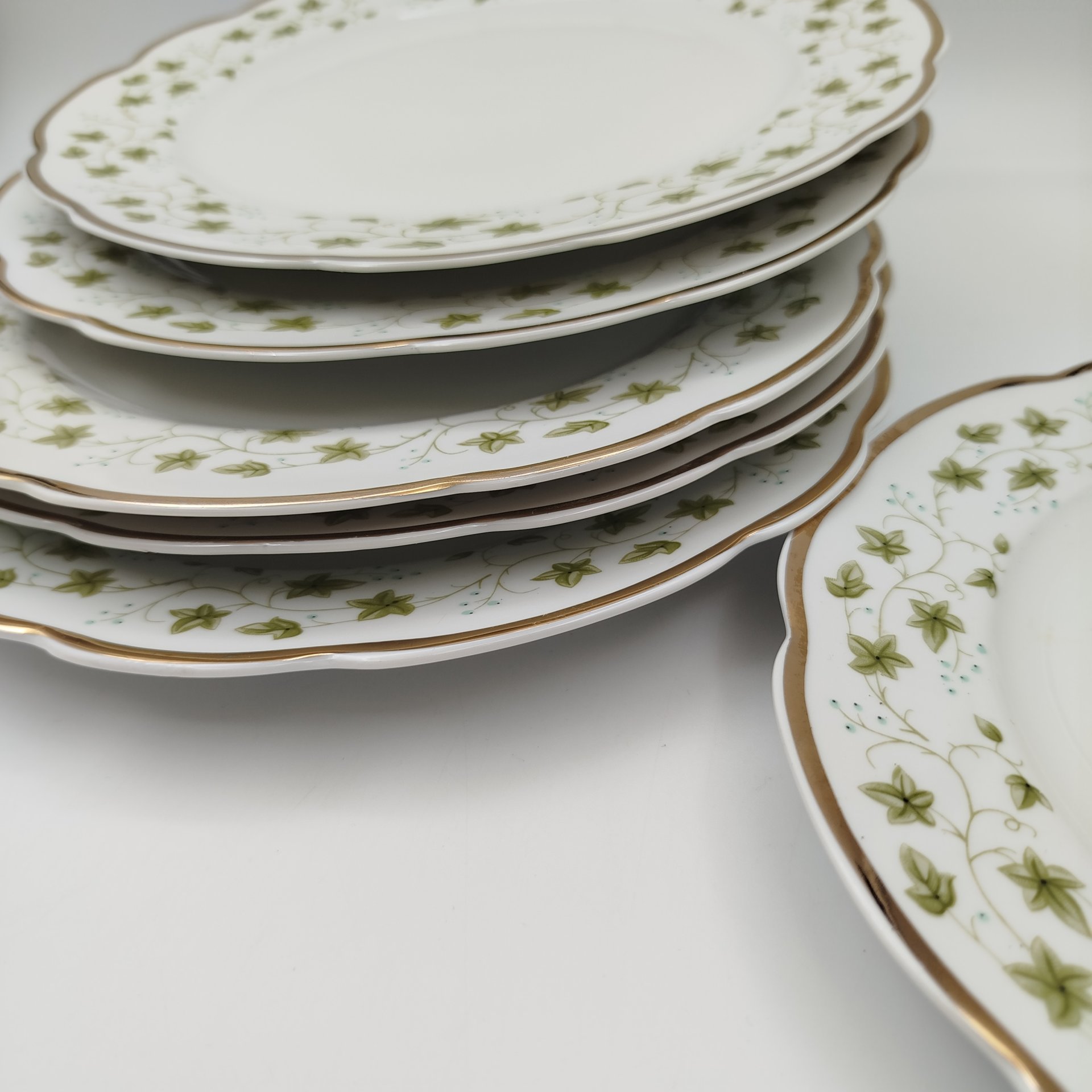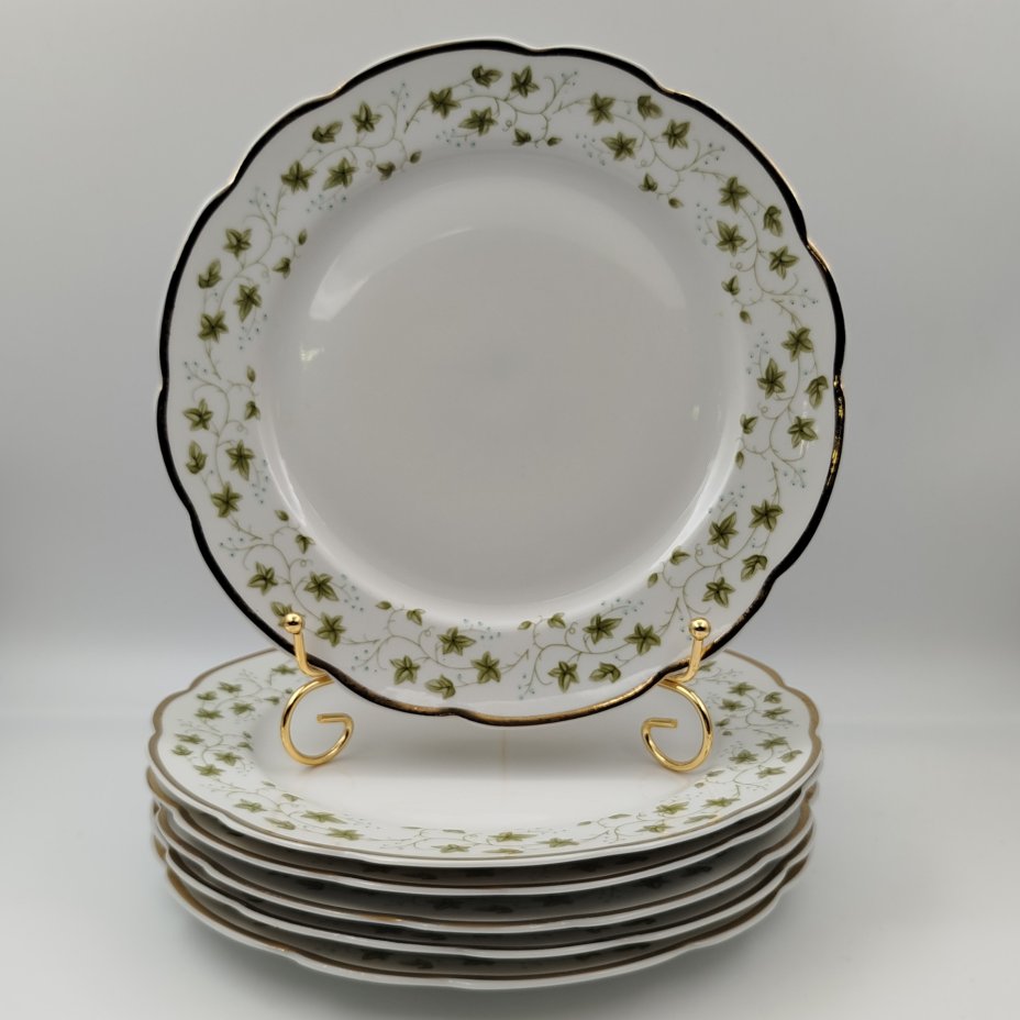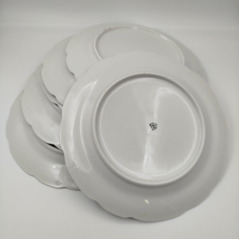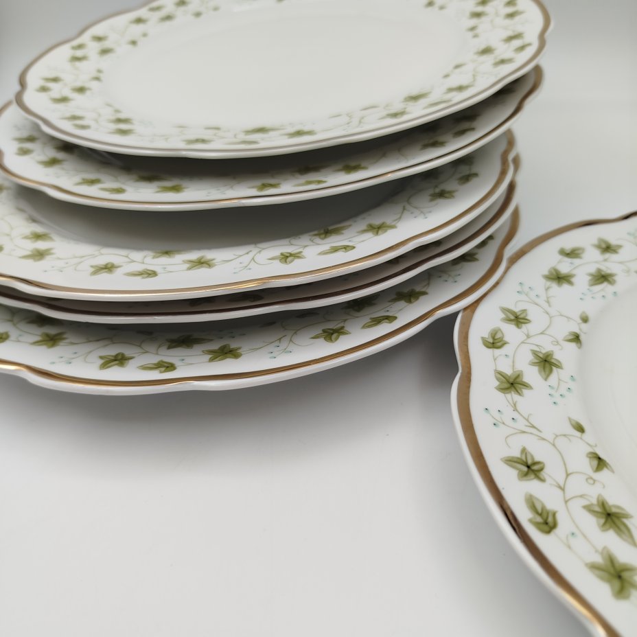 Набор тарелок на 5 персон, украшенных растительным декором, фарфор, Барановский фарфоровый завод, СССР, 1960-1970 гг.