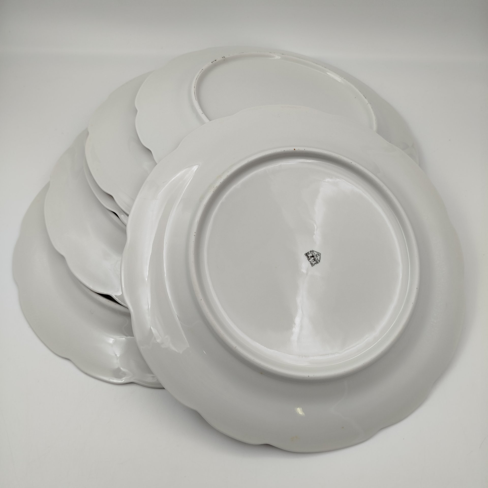 Набор из 6 обеденных тарелок, украшенных цветочным декором, Progres, фаянс, деколь, Польша, 1900-1920 гг.