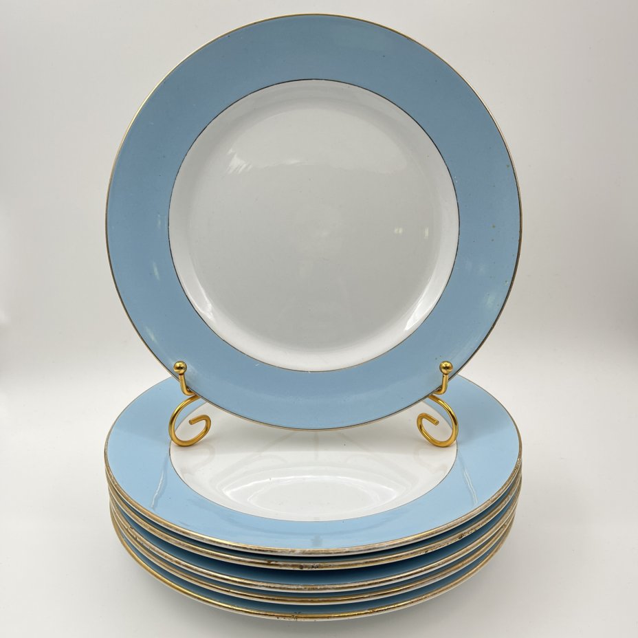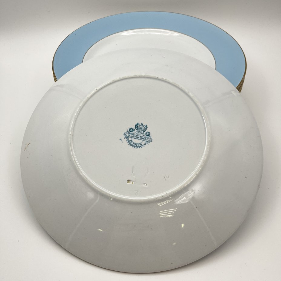 Набор из 17-ти обеденных тарелок с декором в виде гирлянд и роз в медальонах на фоне каймы бирюзового цвета, фарфор, аэрография, деколь, золочение, Российская империя, 1900-1915 гг.