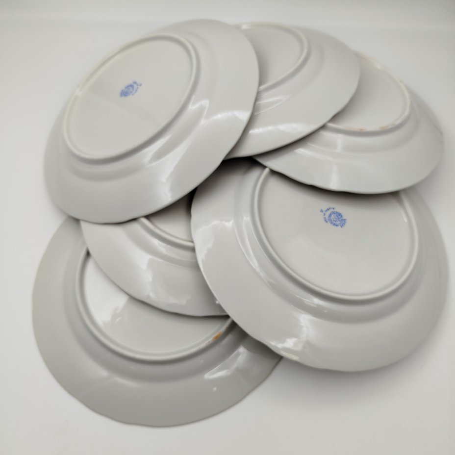 Набор из 6 обеденных тарелок, украшенных цветочным декором, Progres, фаянс, деколь, Польша, 1900-1920 гг.