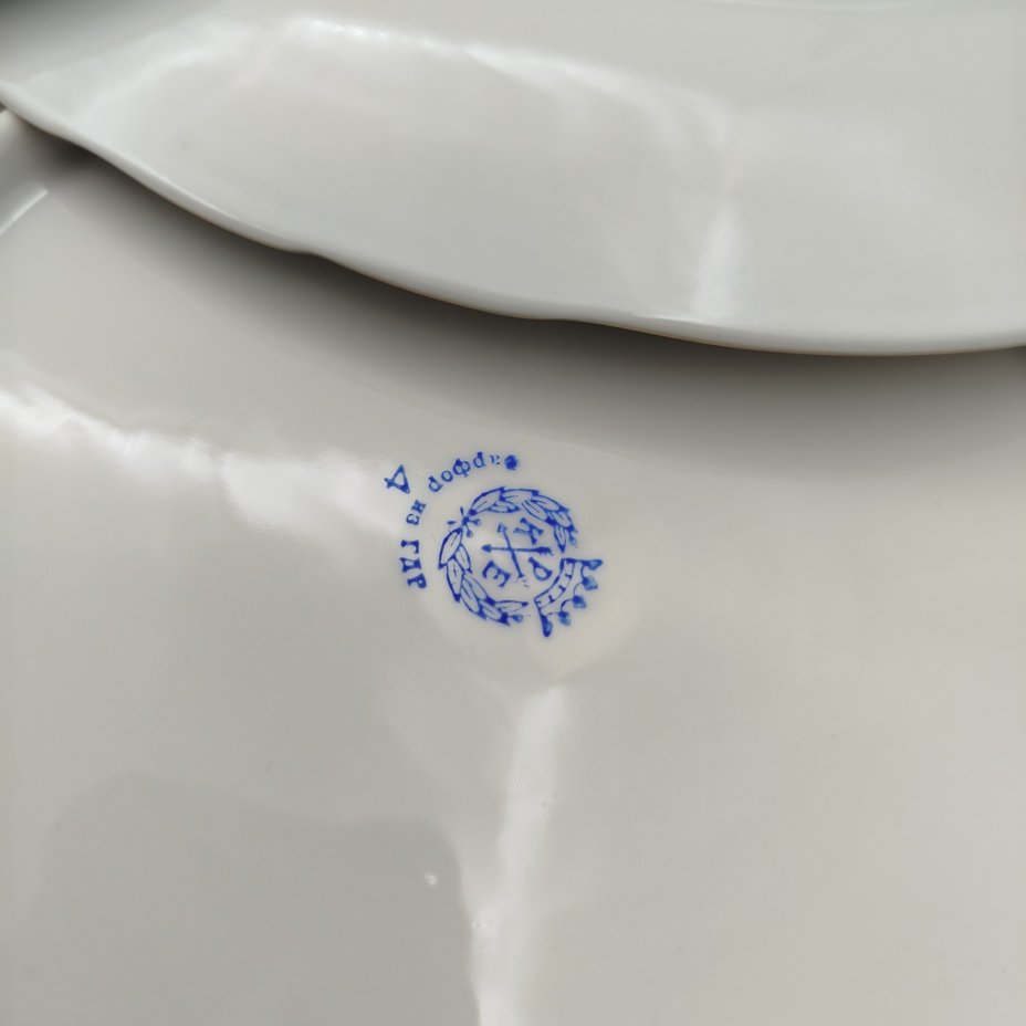 Тарелка с монограммой под короной, "Hache Jullien & Cie Vierzon", фарфор, крытье, роспись, золочение, Франция, 1870-1890 гг.