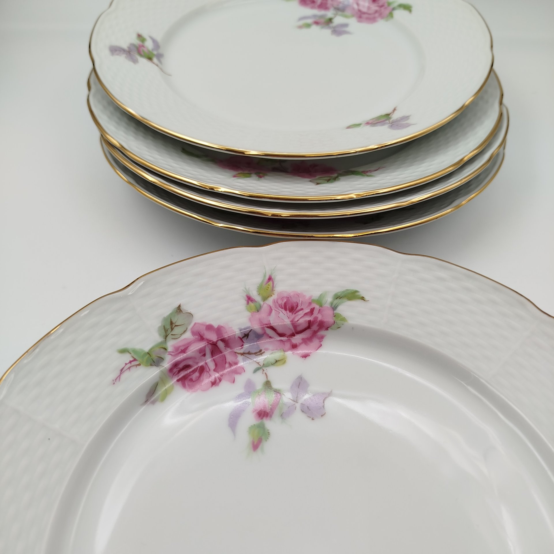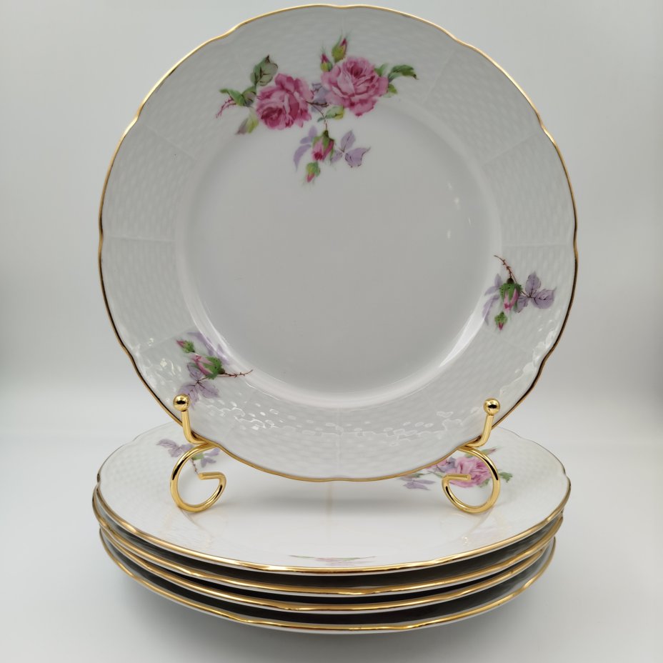 Набор десертных тарелок с растительным декором на 5 персон, серия "Charleroi-Bruxelles", фарфор, золочение, Tirschenreuth, Германия, 1969-1990 гг.