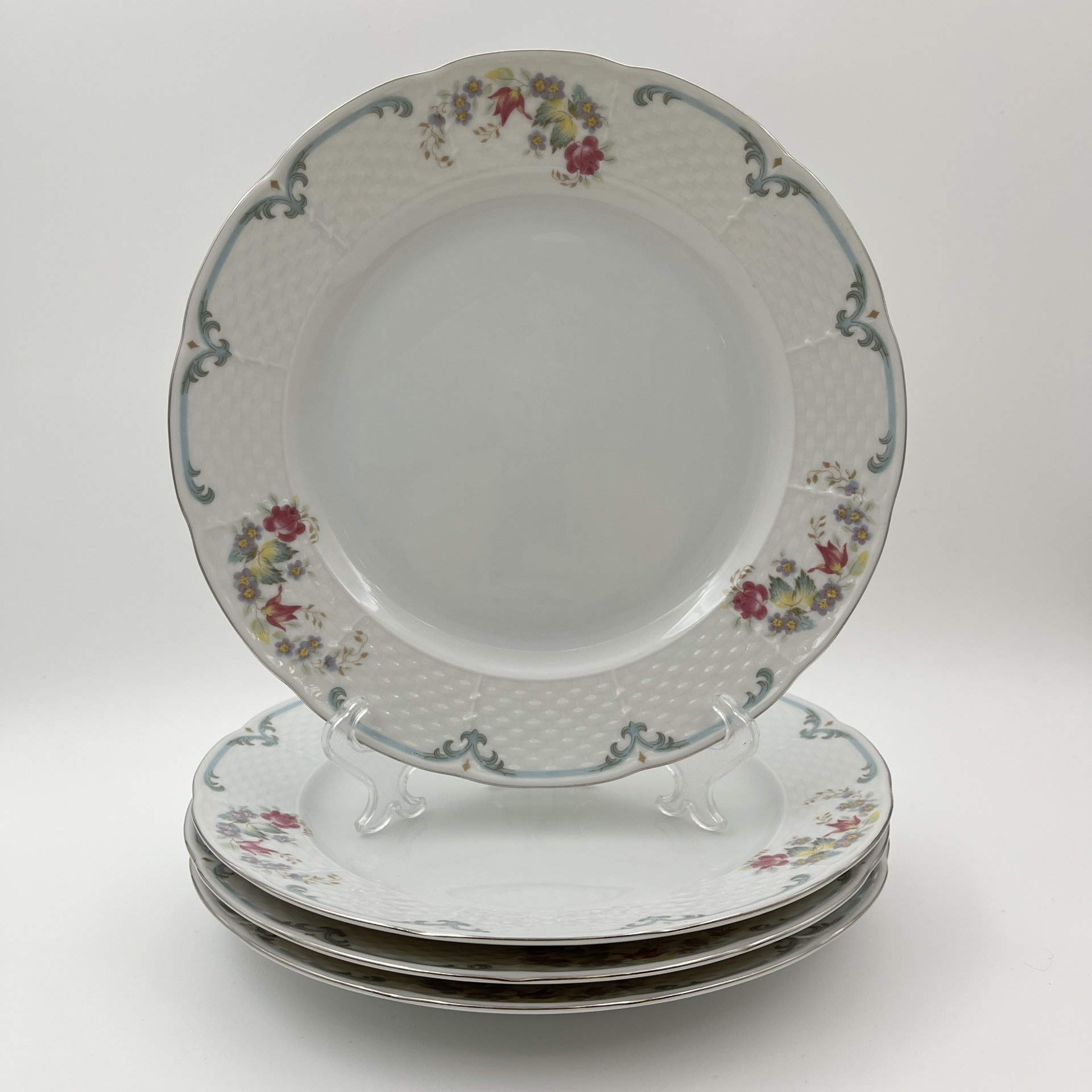 Набор обеденных тарелок на 4 персоны, украшенных цветочным декором, Фаянсовая фабрика "Franz Anton Mehlem", фаянс, роспись, золочение, Германия, 1900-1920 гг.