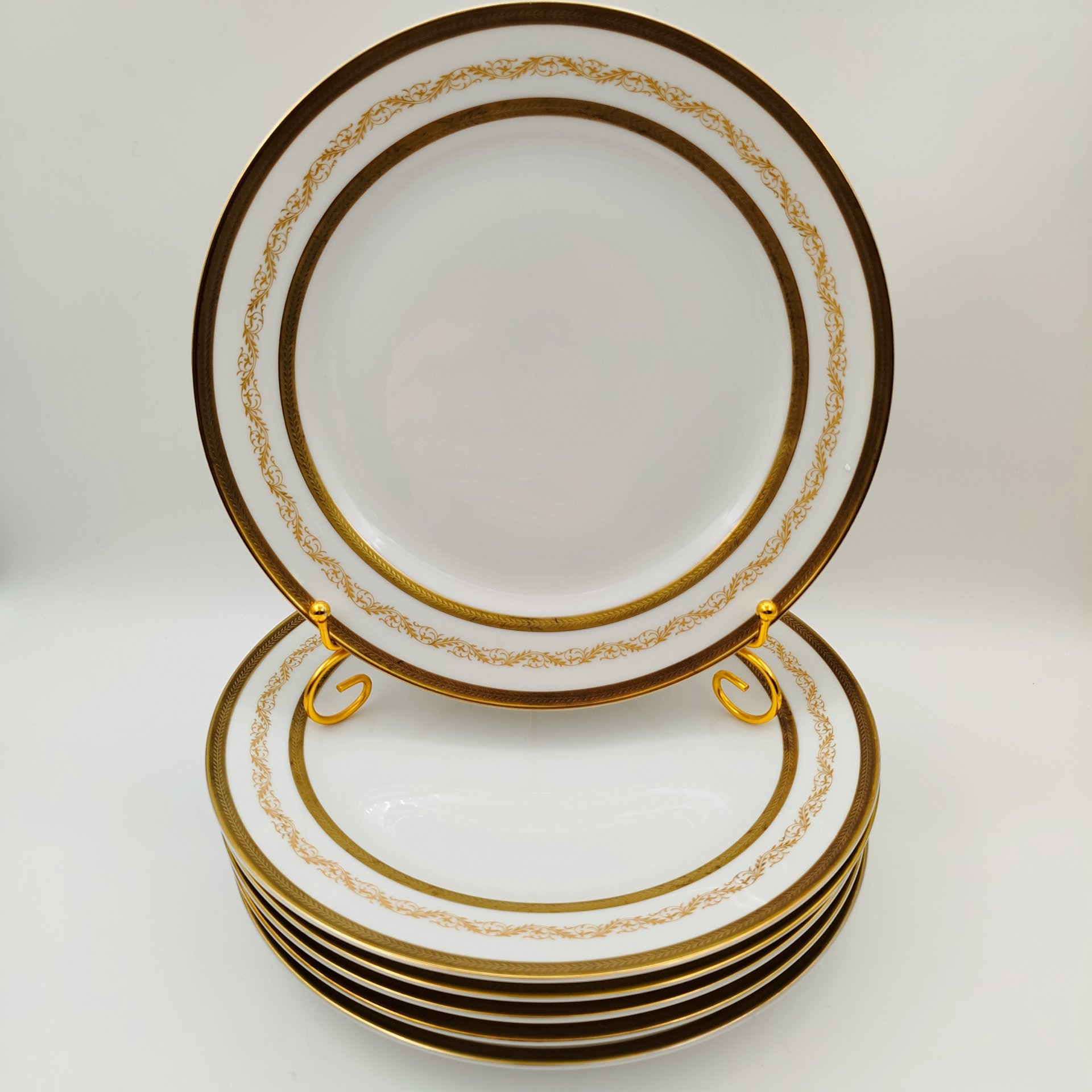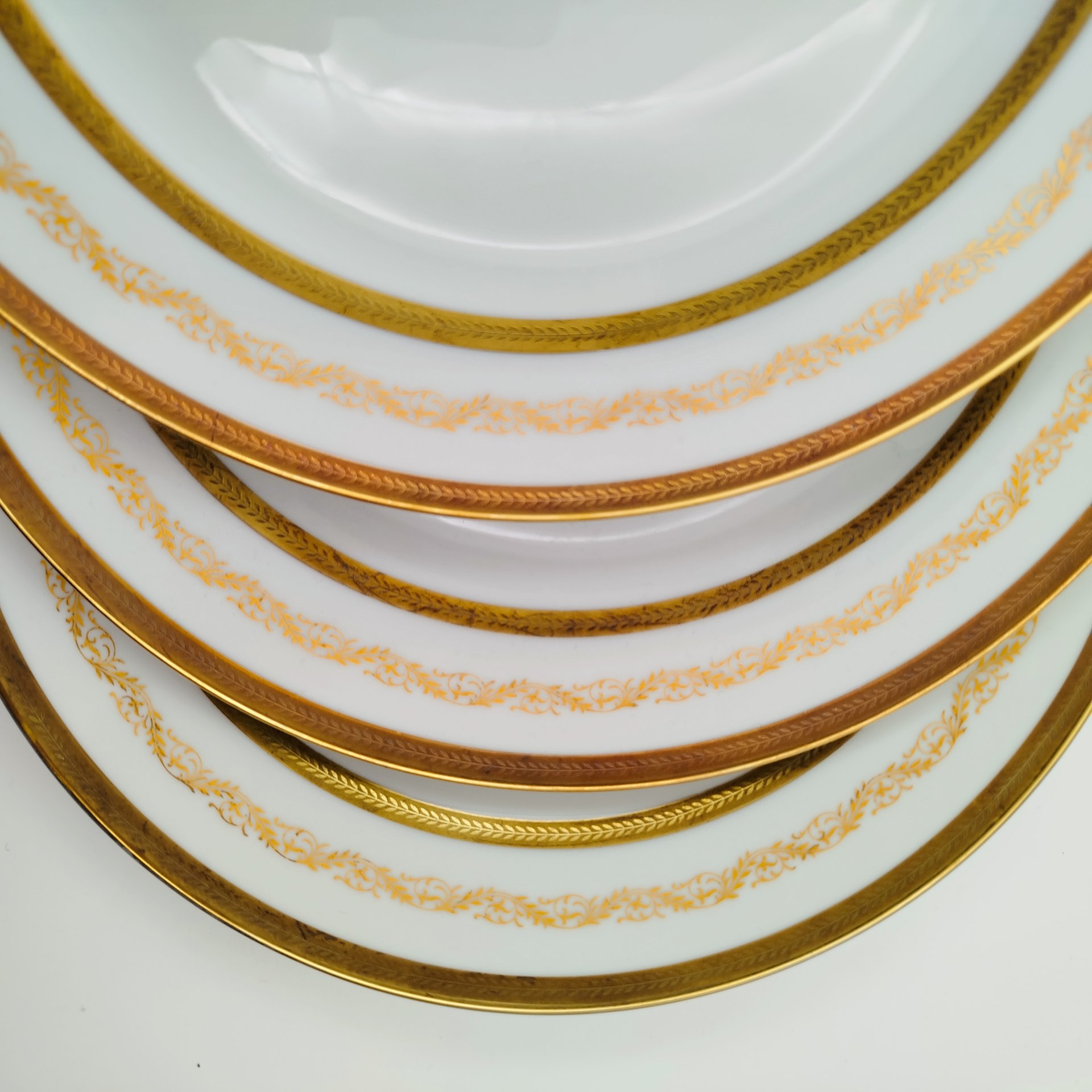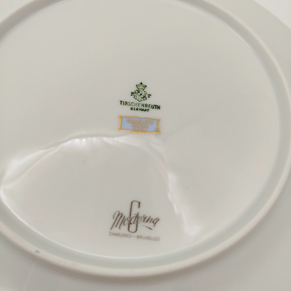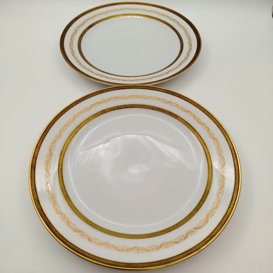 Набор тарелок для горячих блюд с растительным декором на 6 персон, серия "Charleroi-Bruxelles", фарфор, золочение, Tirschenreuth, Германия, 1969-1990 гг.