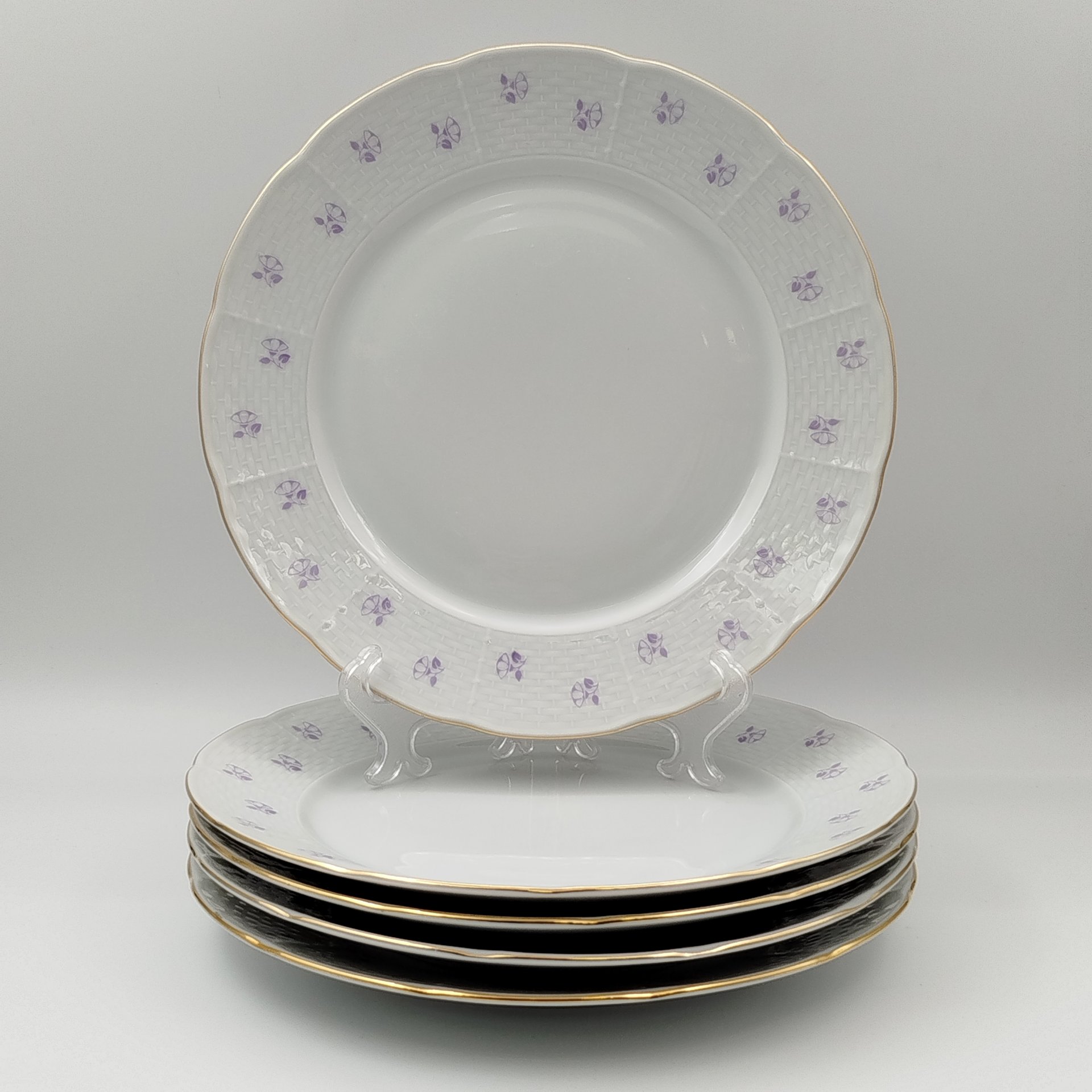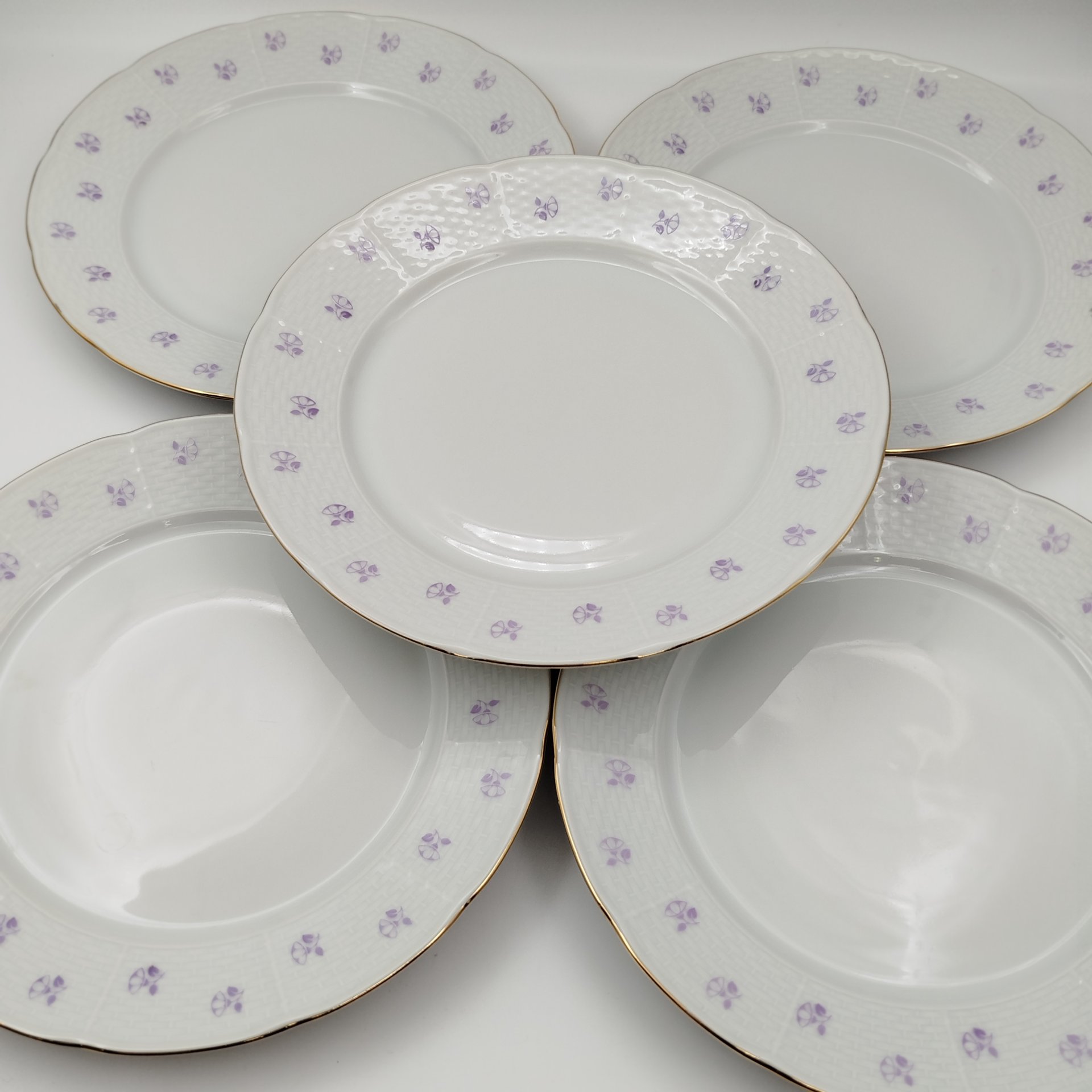 Набор из пяти обеденных тарелок с декором в виде сирени, фарфор, аэрография, деколь, Российская империя, 1900-1917 гг.