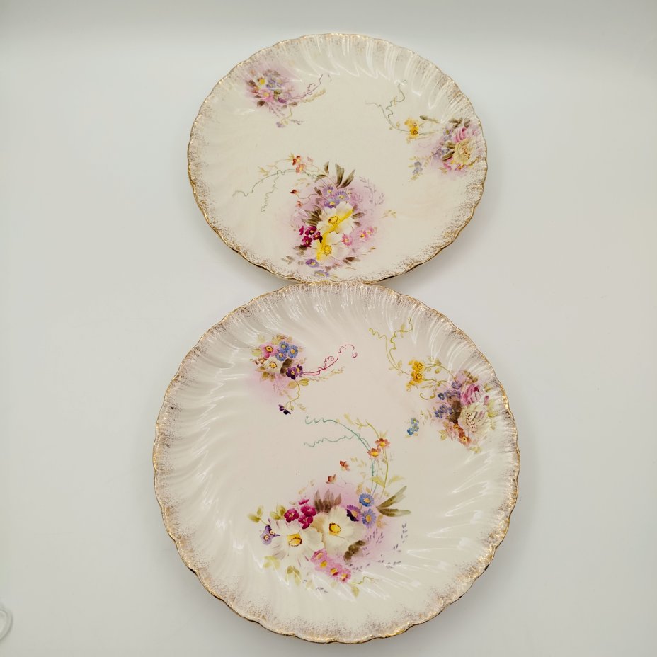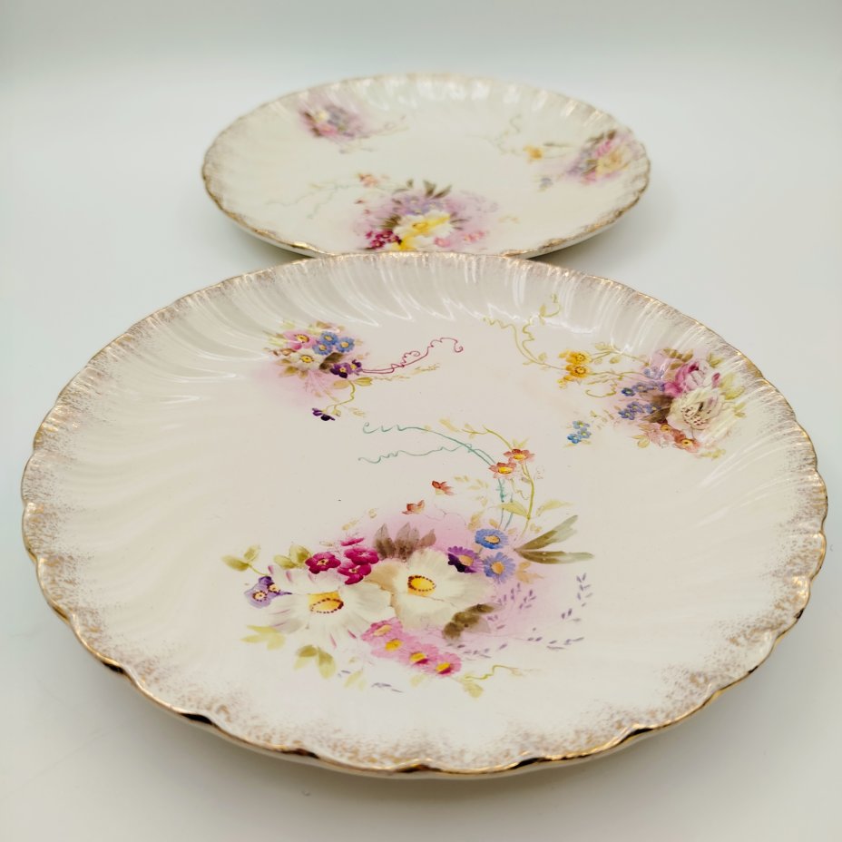 Набор из двух тарелок с цветочным декором, фарфор, золочение, Коростенский фарфоровый завод (КФЗ), СССР, 1950-1960 гг.