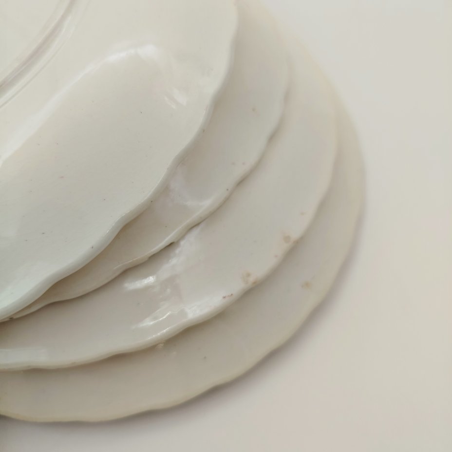 Набор из шести тарелок с волнистым бортом и золотым кантом, фарфор, золочение, Товарищество М.С. Кузнецова, Российская империя, 1892-1917 гг.