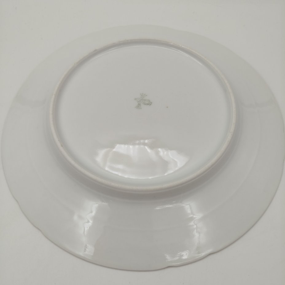Тарелка с монограммой под короной, "Hache Jullien & Cie Vierzon", фарфор, крытье, роспись, золочение, Франция, 1870-1890 гг.