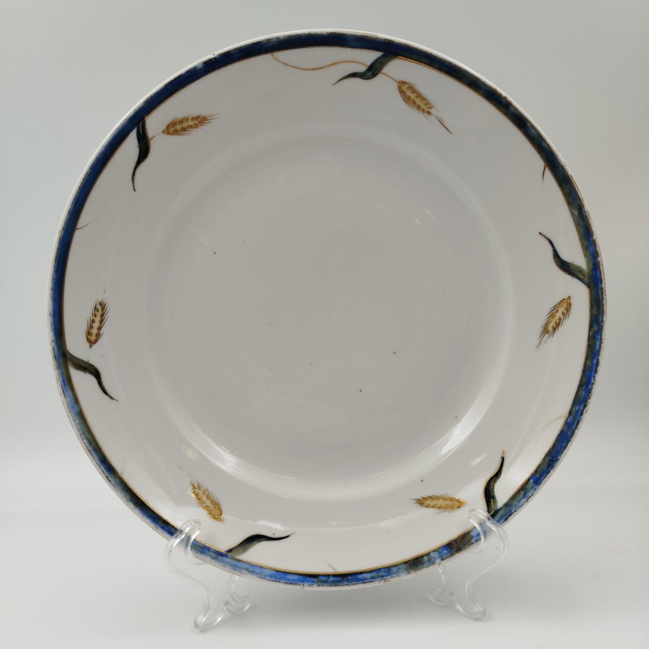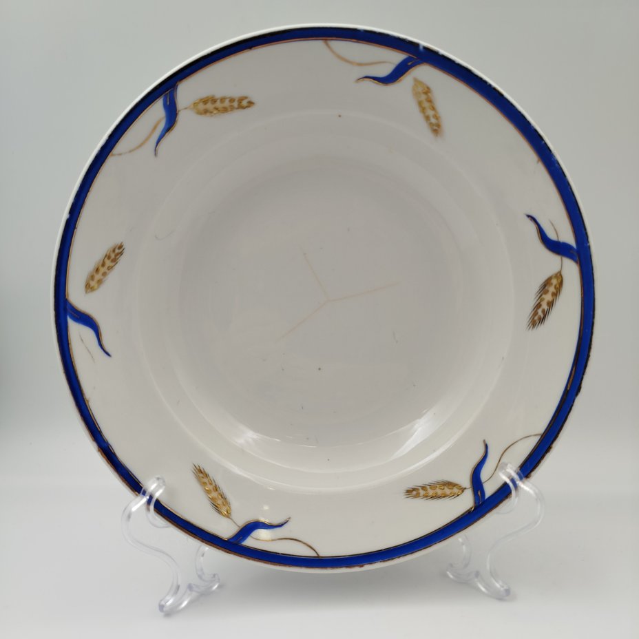 Набор обеденных тарелок "Золотые колосья" (обеденная и суповая), автор росписи Мысягин В.П., фарфор, роспись, золочение, Дулевский фарфоровый завод (Дулёво), СССР, 1951 г.