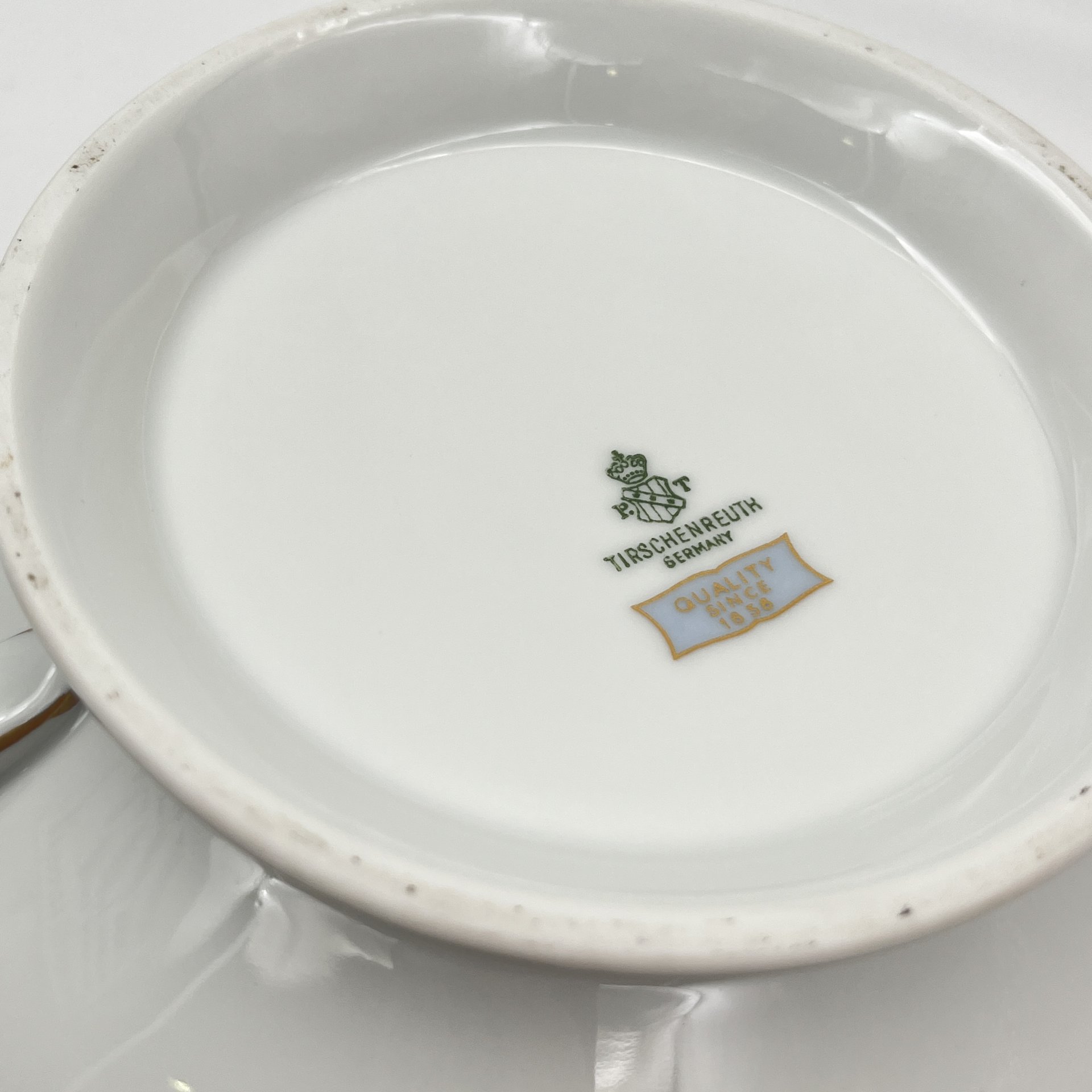 Набор тарелок для горячих блюд с растительным декором на 6 персон, серия "Charleroi-Bruxelles", фарфор, золочение, Tirschenreuth, Германия, 1969-1990 гг.
