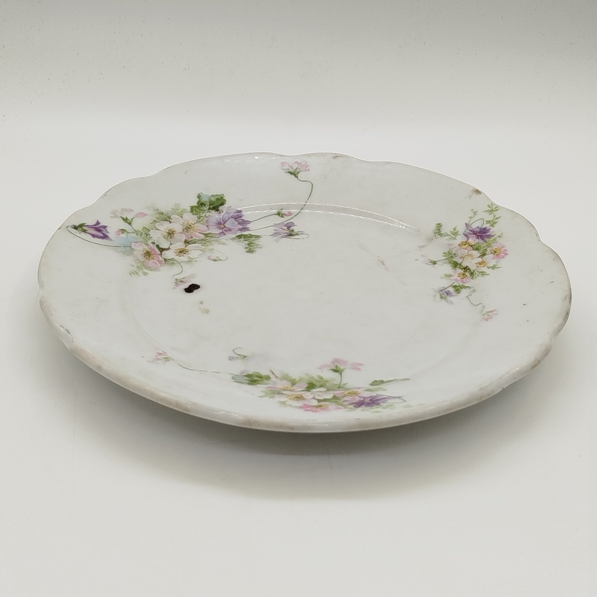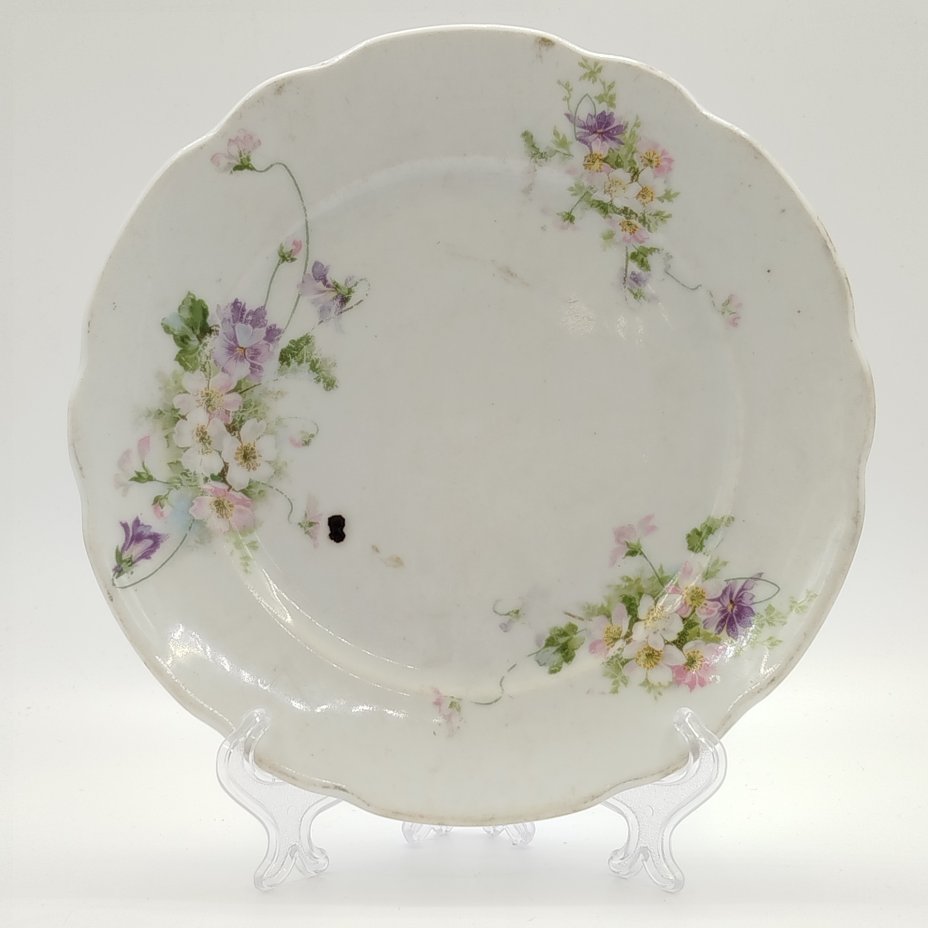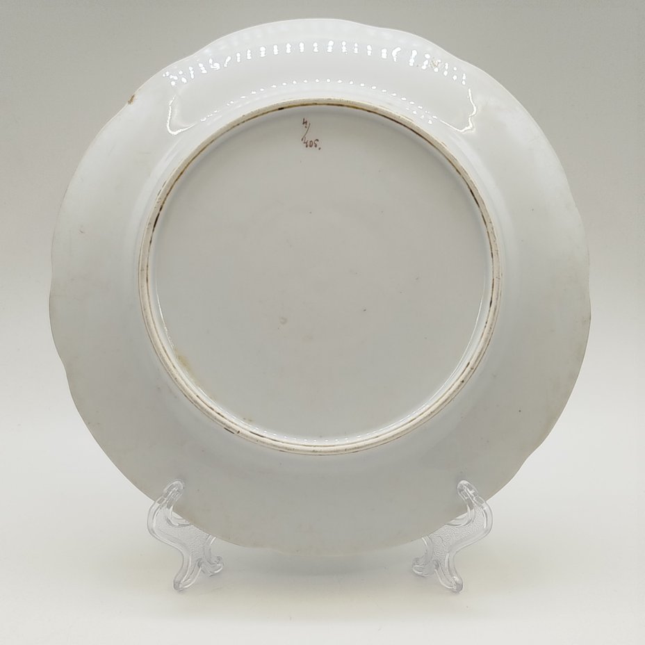 Набор из 8-ми обеденных тарелок с цветочным декором и рокайлями, фарфор, деколь с подрисовкой, Фабрика князя Друцкого-Любецкого в Цмелеве, Российская империя, 1887-1917 гг.