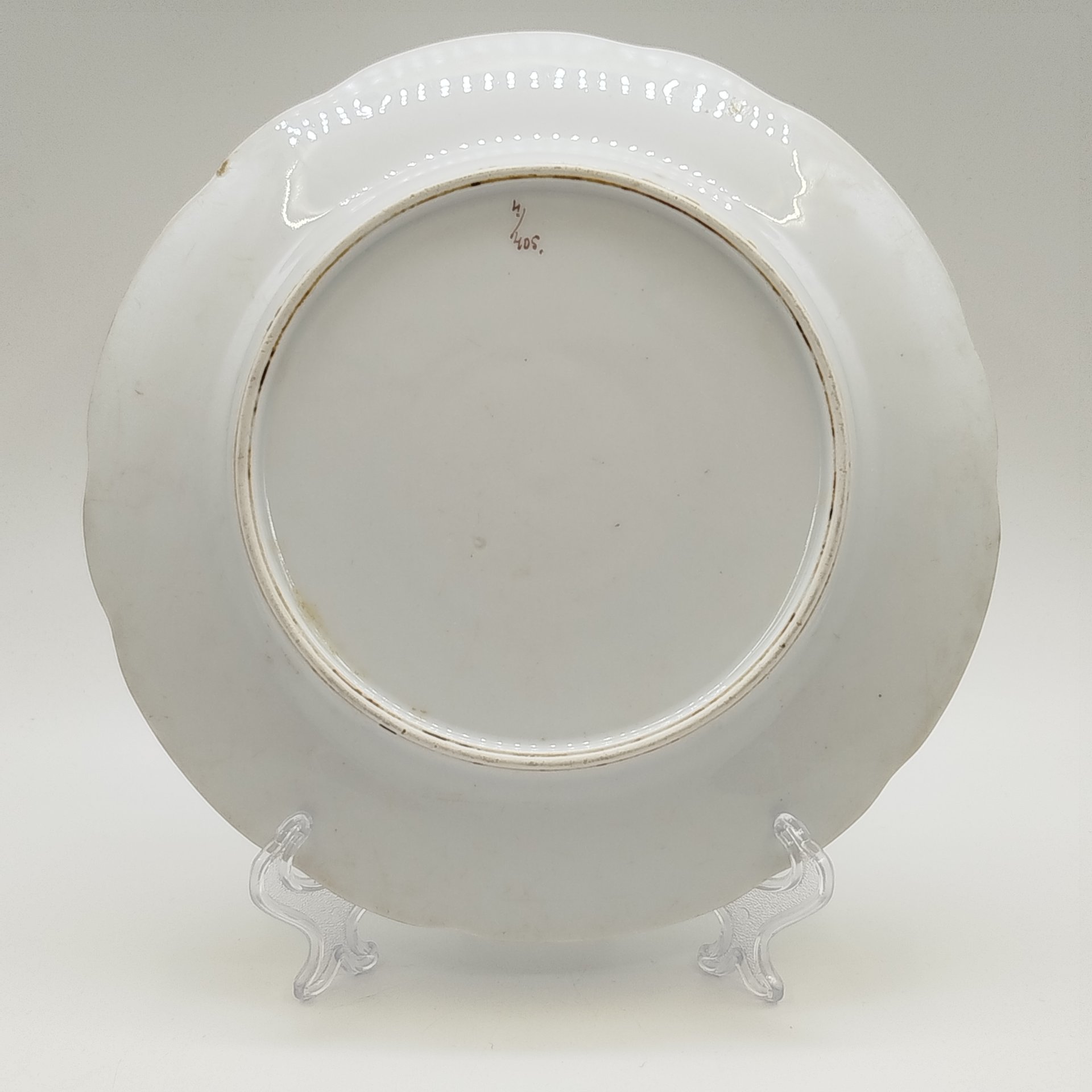 Тарелка обеденная с фигурным краем и каймой синего цвета, фарфор, обводка, золочение, Российская империя, 1890-1917 гг.