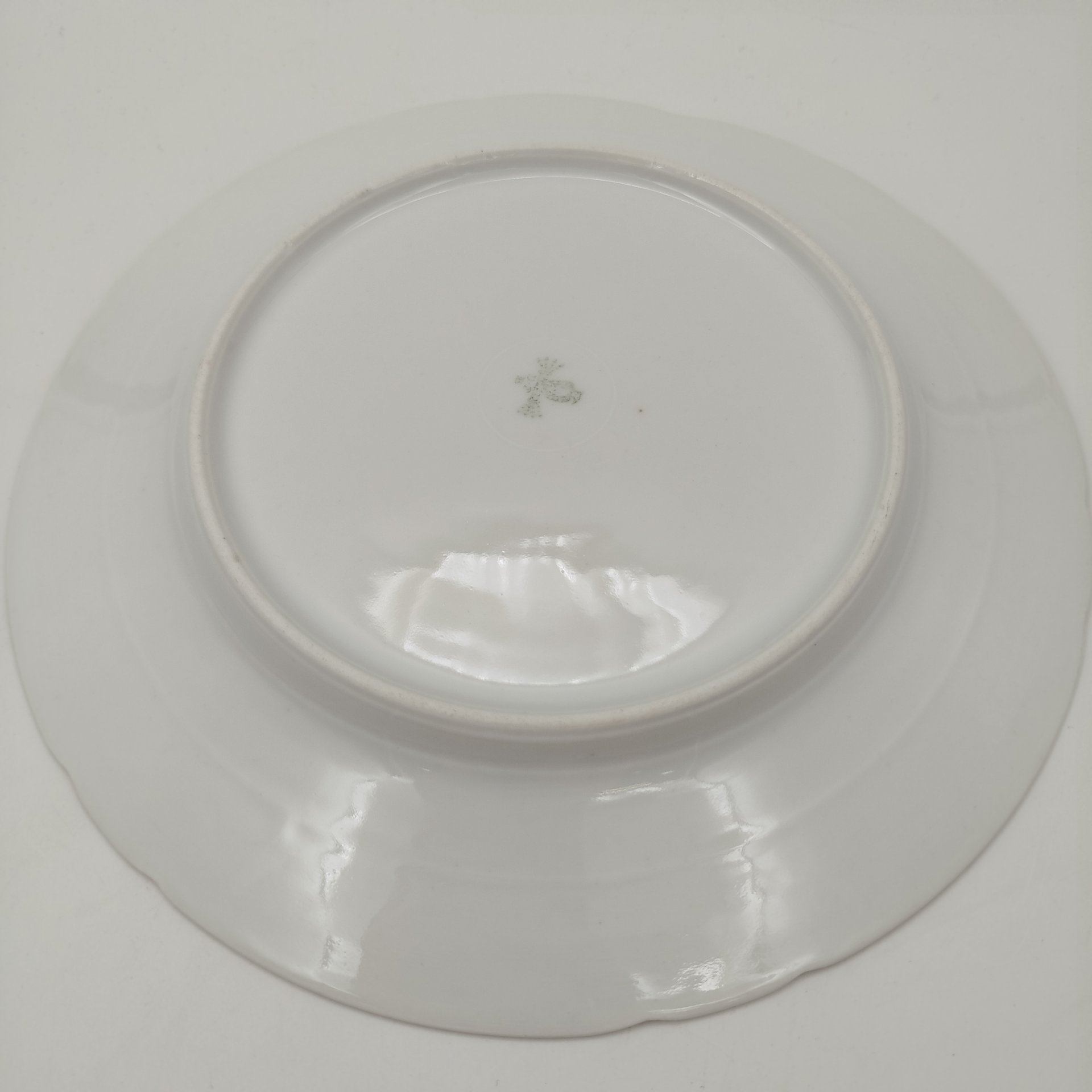 Набор из 8-ми обеденных тарелок с цветочным декором и рокайлями, фарфор, деколь с подрисовкой, Фабрика князя Друцкого-Любецкого в Цмелеве, Российская империя, 1887-1917 гг.
