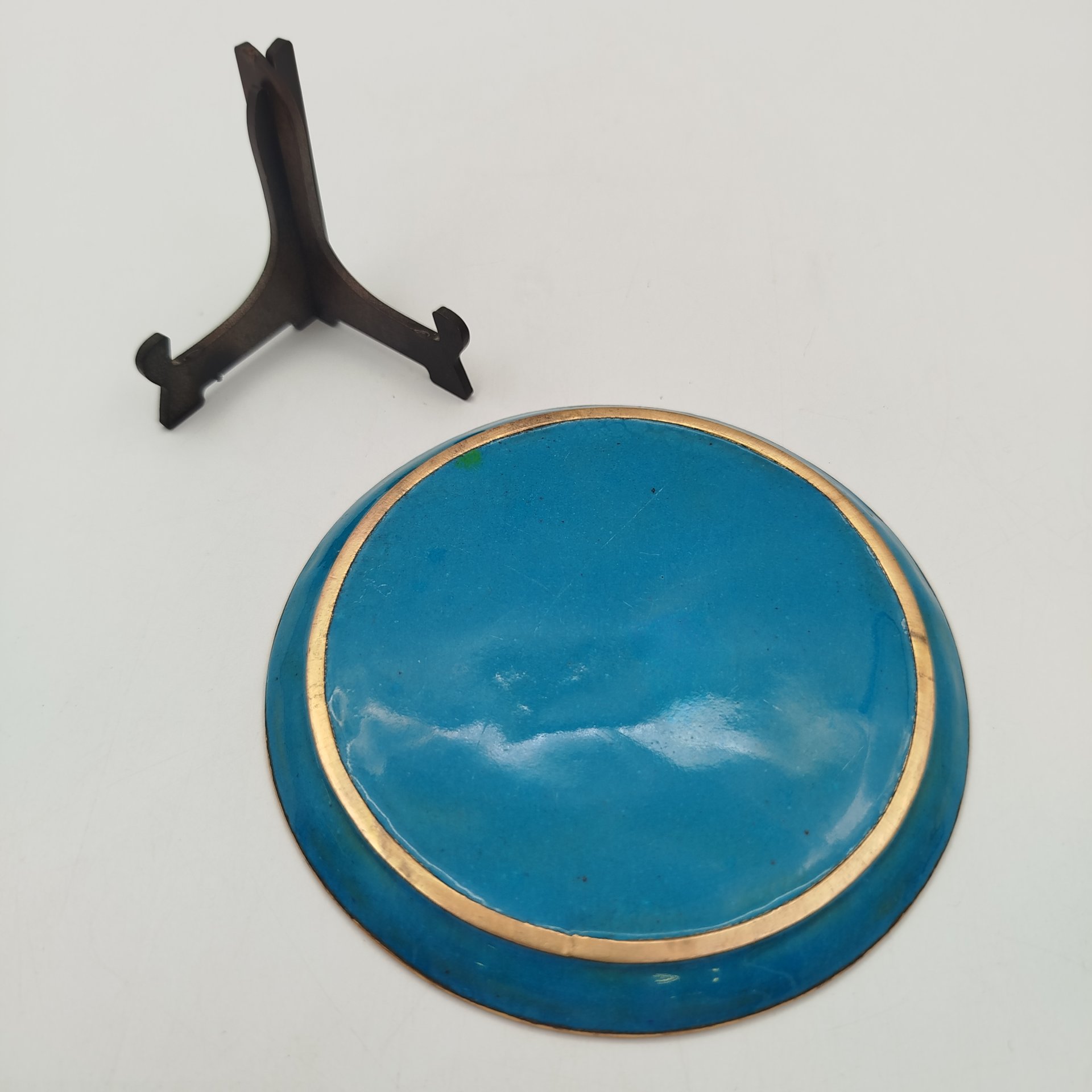 Тарелка обеденная с фигурным краем и каймой синего цвета, фарфор, обводка, золочение, Российская империя, 1890-1917 гг.