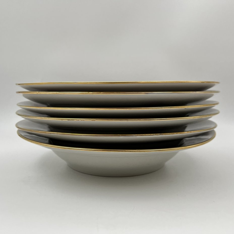 Набор суповых тарелок с растительным декором (на 6 персон), фарфор, деколь, золочение, Weimar Porzellan (Веймарский фарфор), Германия, 1970-1990 гг.