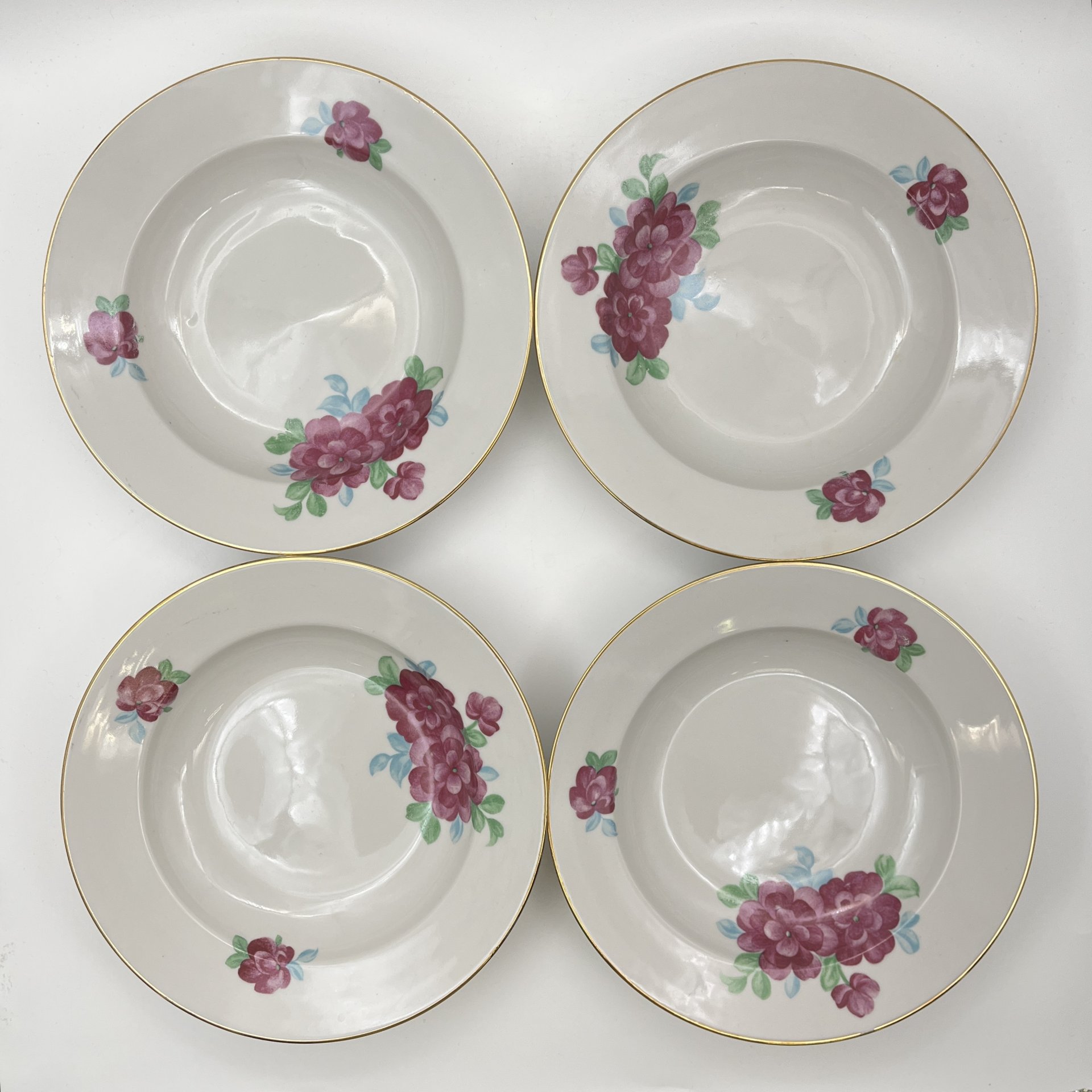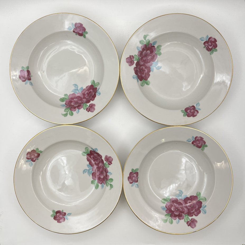 Набор из четырех суповых тарелок с цветочным декором, фарфор, деколь, золочение, Bohemia (Neurohlau), Чехословакия, 1970-1990 гг.
