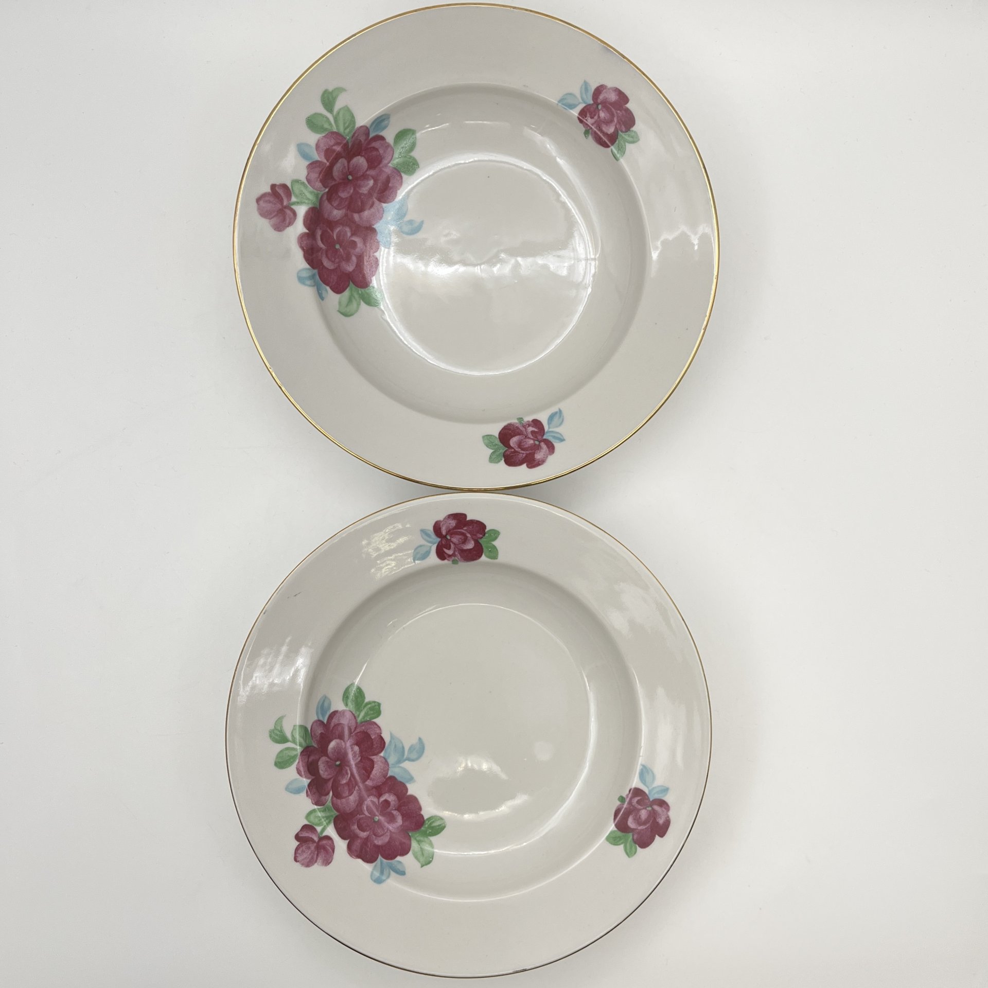Набор тарелок, украшенных изображением цветов (3 суповые тарелки и 3 обеденные), фарфор, деколь, СССР, 1920-1930 гг.