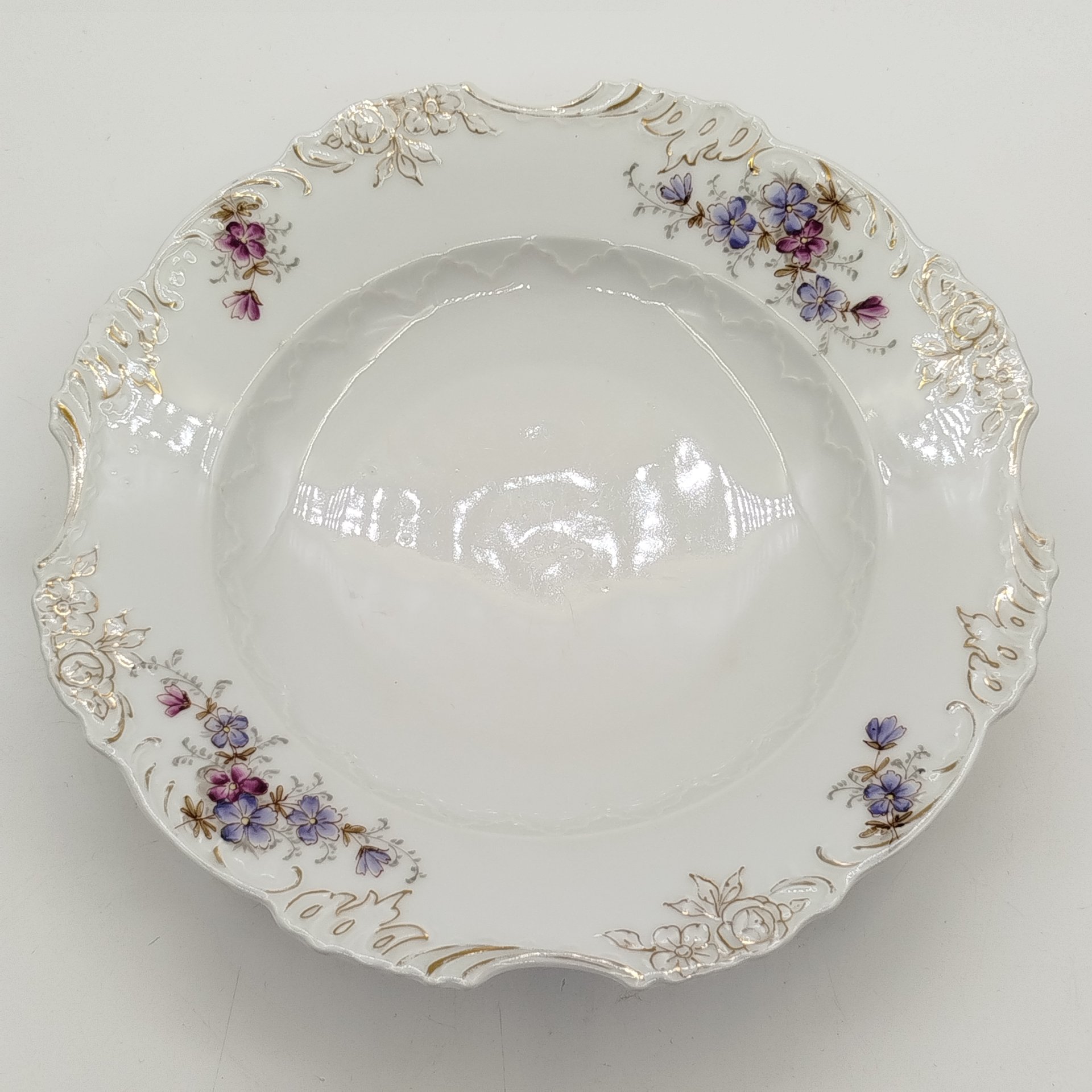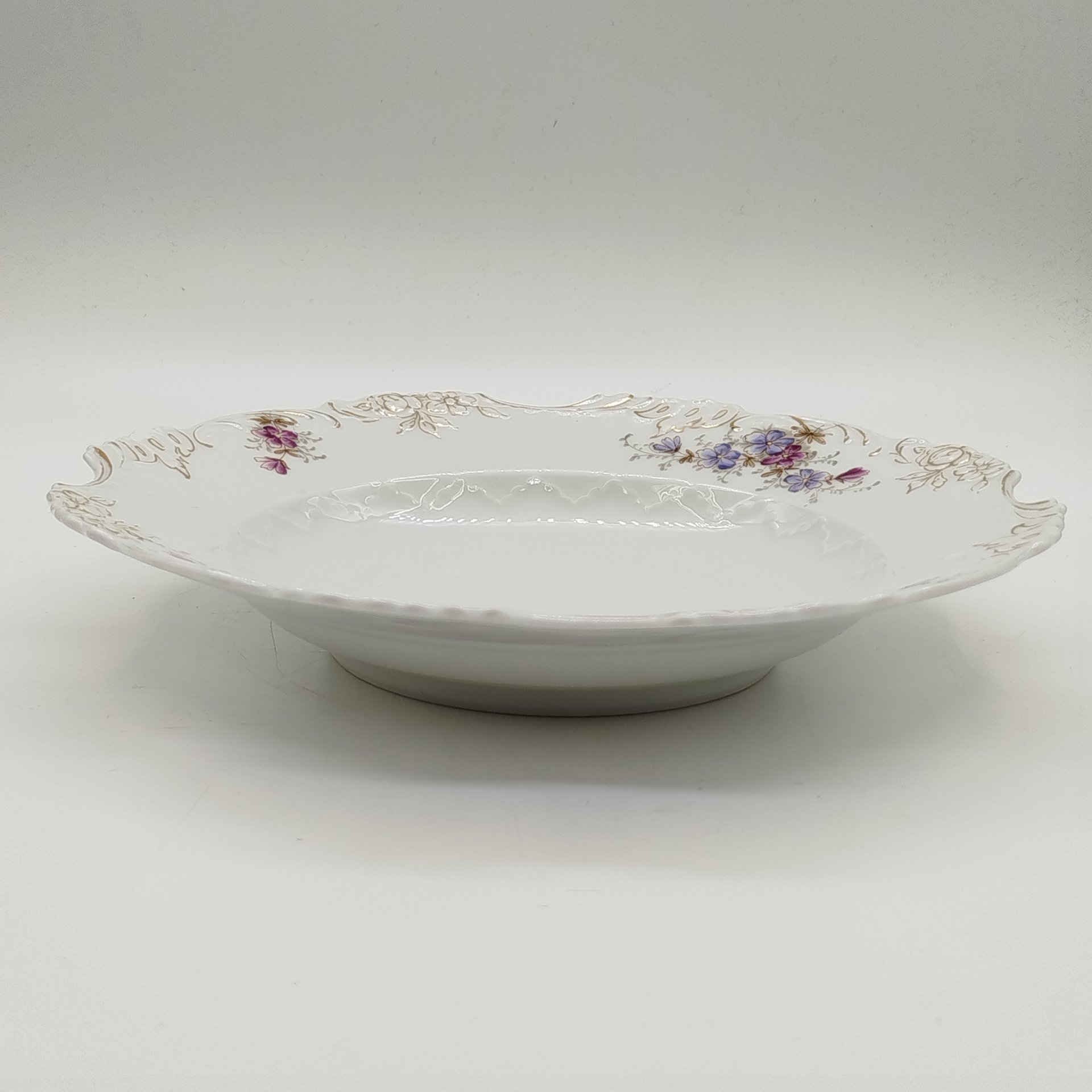 Тарелка суповая с декором в виде сирени, фарфор, аэрография, деколь, Российская империя, 1900-1917 гг.