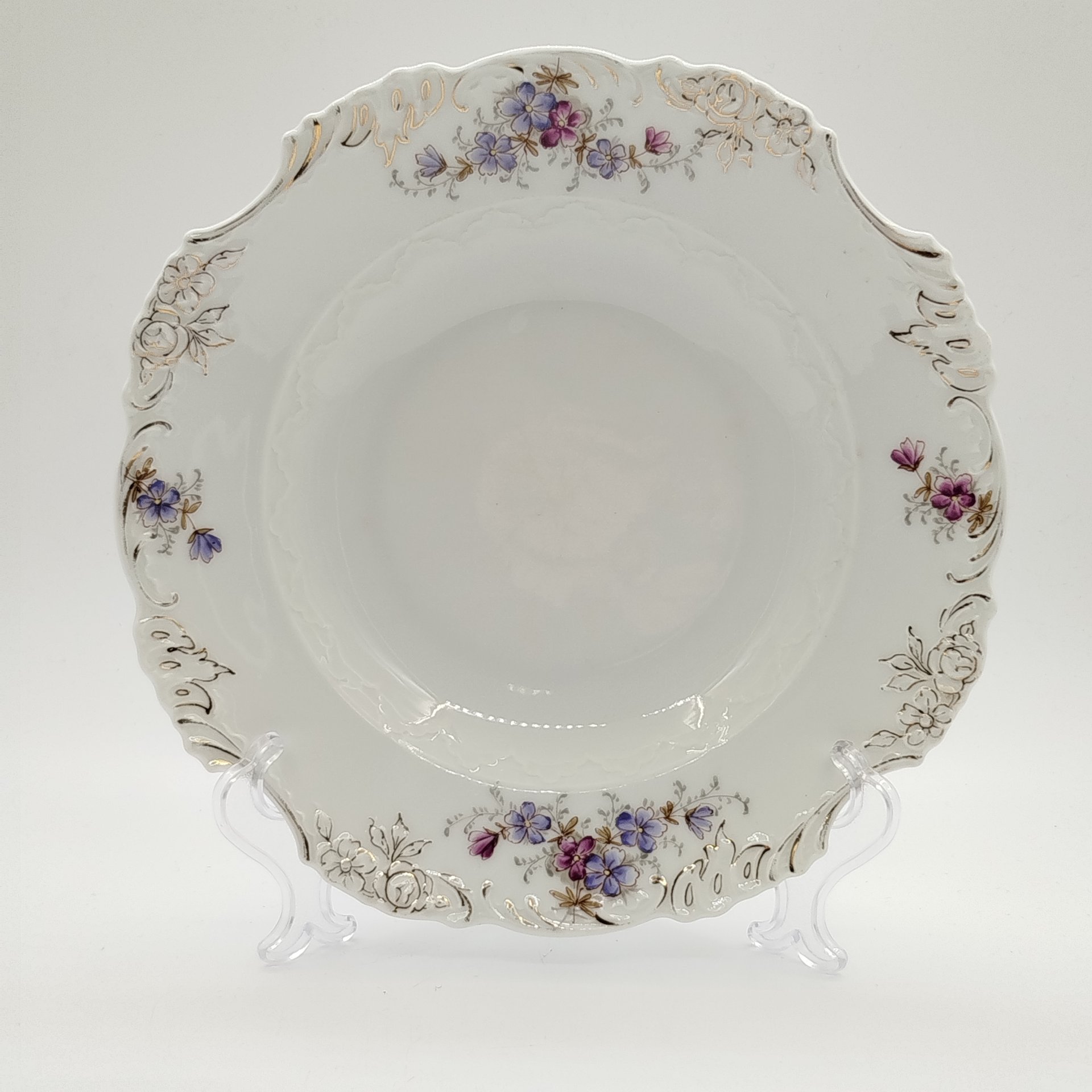 Набор из четырех суповых тарелок с цветочным декором, фарфор, деколь, золочение, Bohemia (Neurohlau), Чехословакия, 1970-1990 гг.