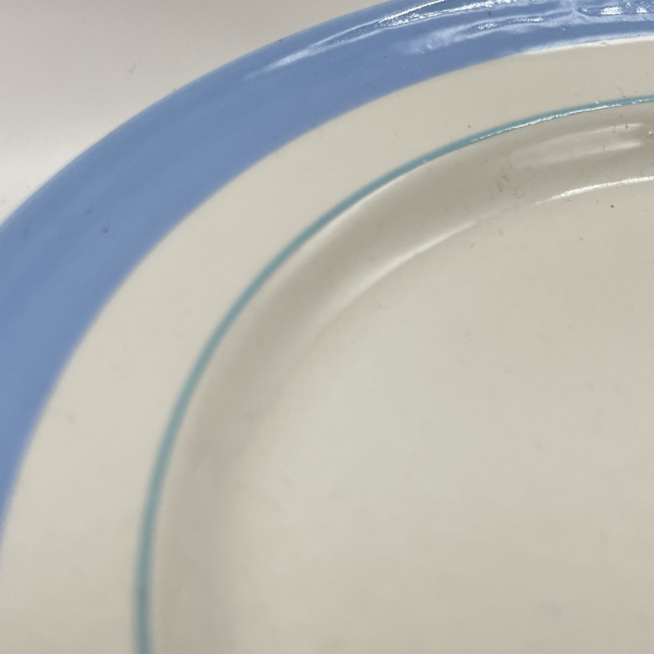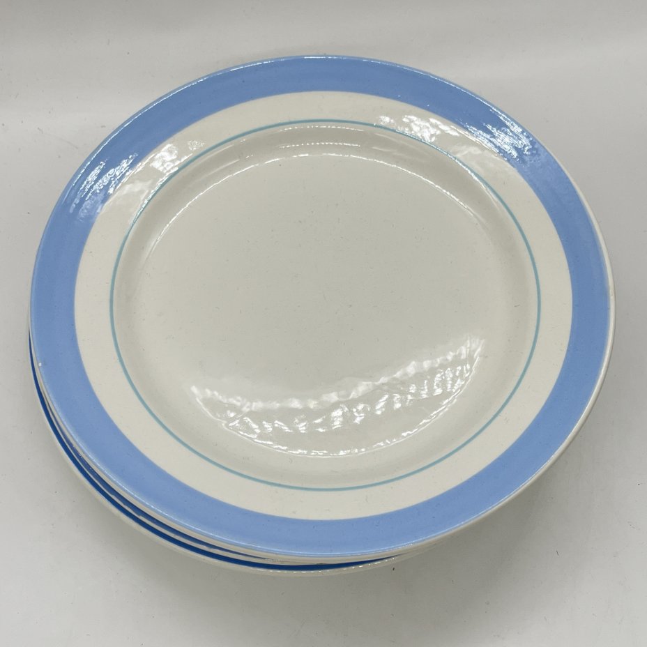 Набор из 4 обеденных тарелок с лаконичным декором, фаянс, деколь, Конаковский фаянсовый завод им. М.И. Калинина (ЗиК Конаково), СССР, 1960-1990 гг.