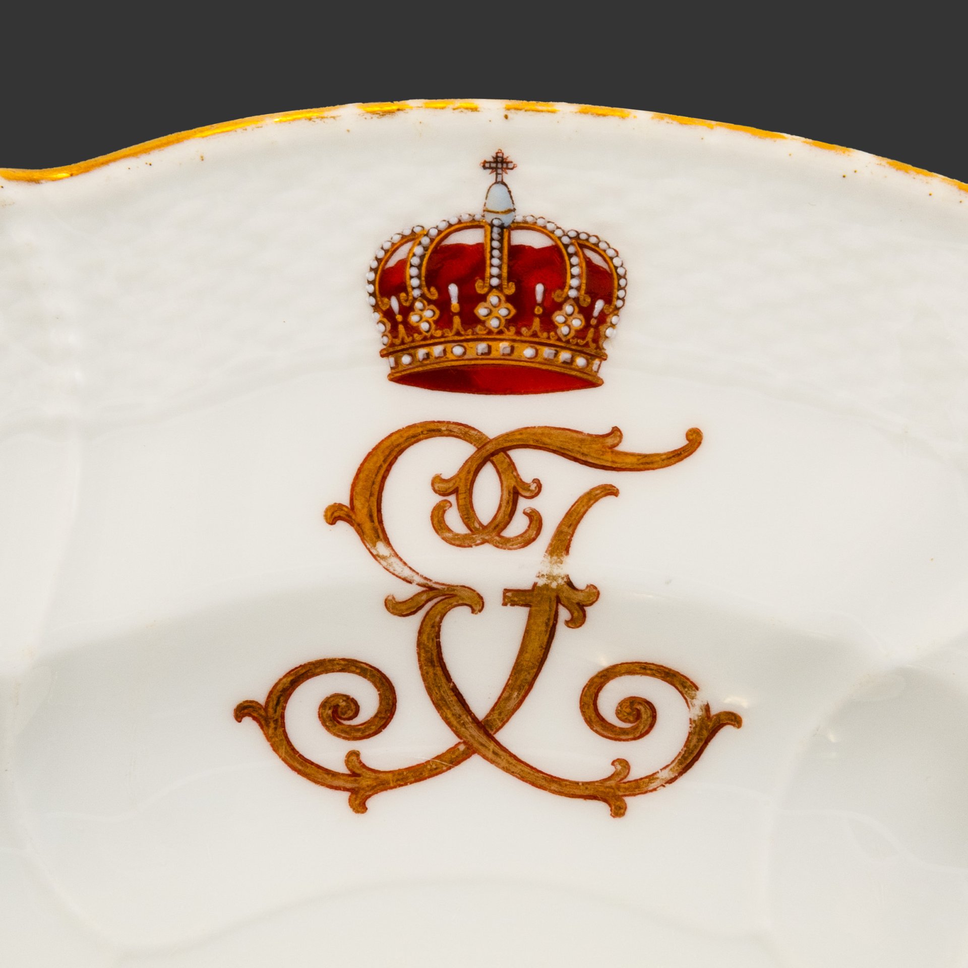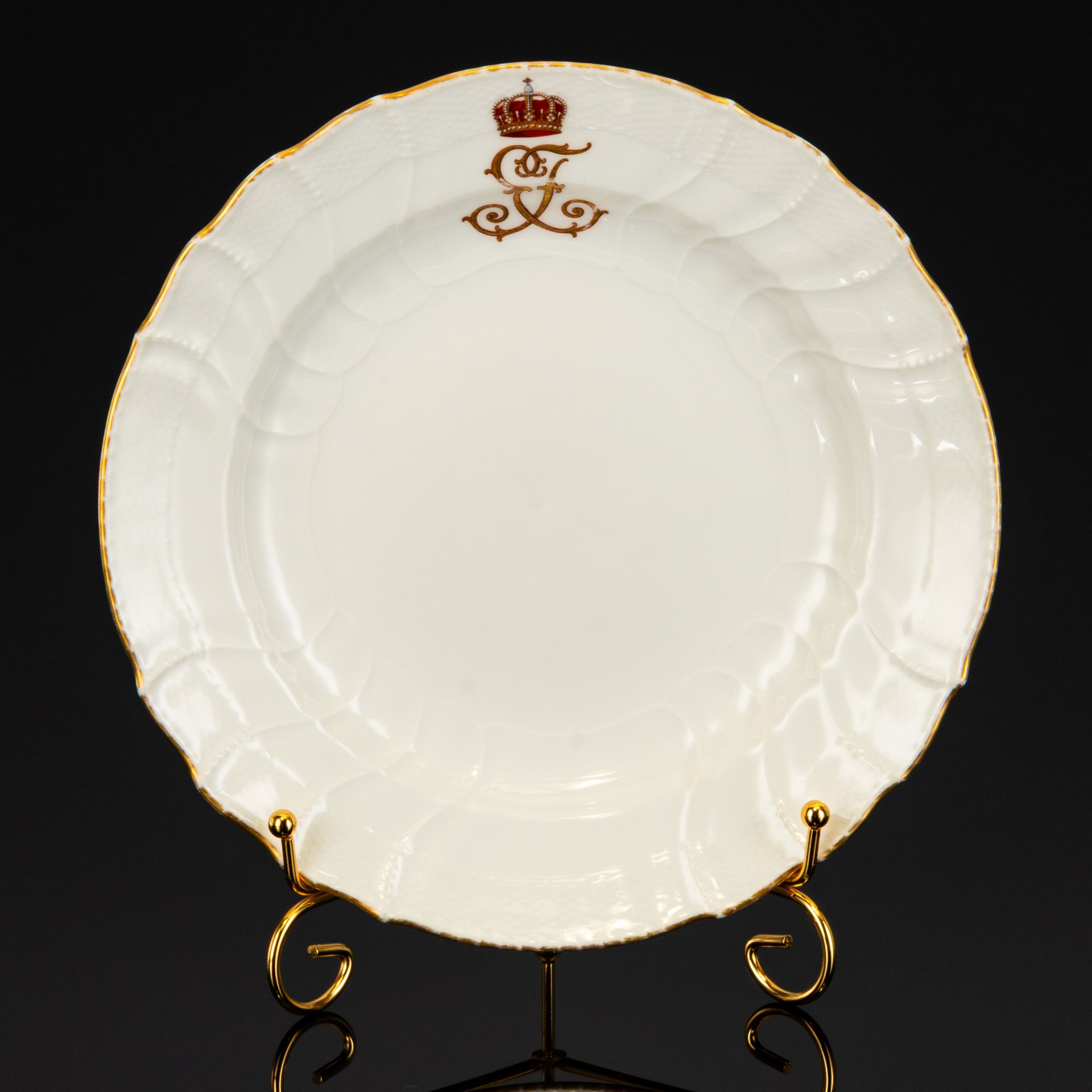 Набор из 5-ти тарелок с прорезным бортом и ягодно-фруктовым декором, фарфор, деколь, золочение, Западная Европа, 1900-1930 гг.