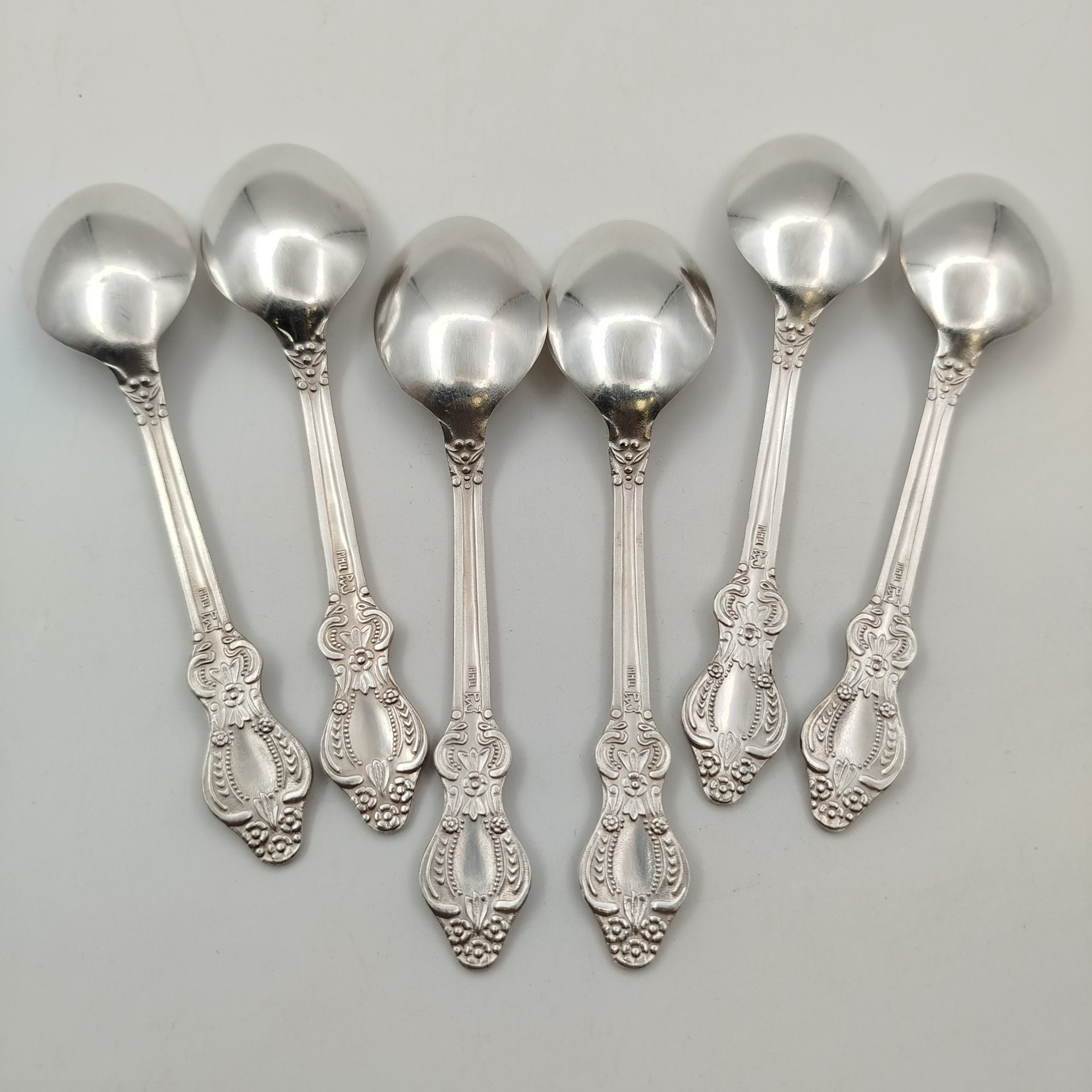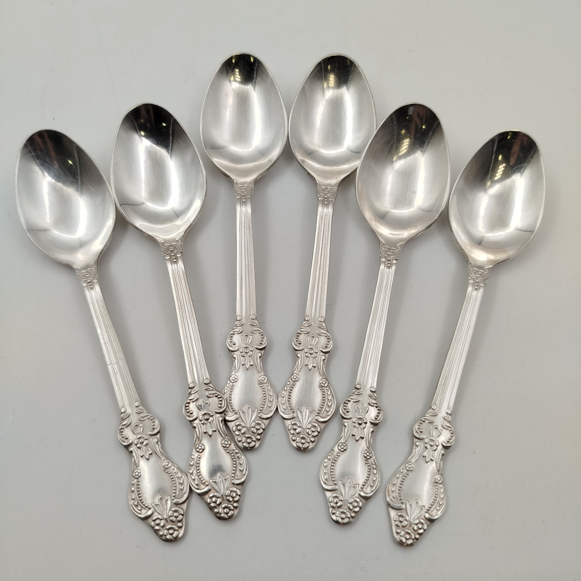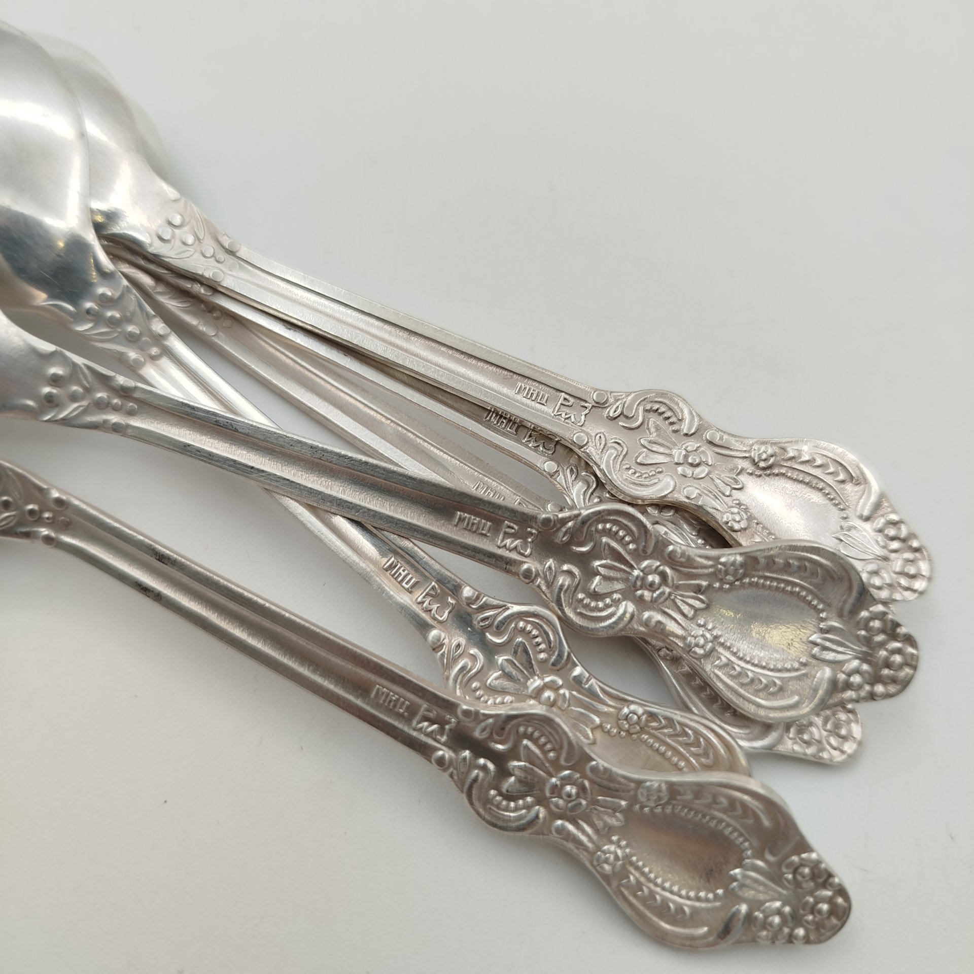 Набор из 6-ти чайных ложек, украшенных растительным декором, мНЦ (медь-никель-цинк), Режевский механический завод (РМ), СССР, 1983-1991 гг.