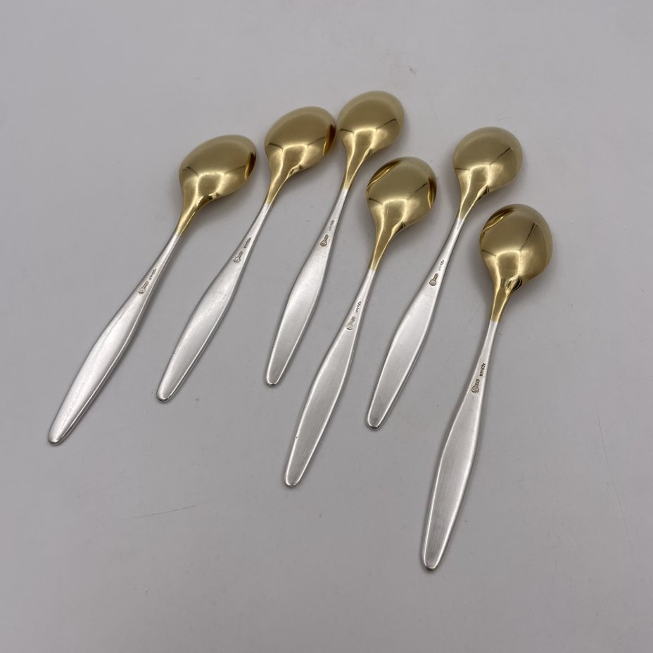 Набор из 6 чайных ложек, мНЦ (медь-никель-цинк), штамповка, золочение, Кольчугинский завод цветных металлов, СССР, 1962-1991 гг.