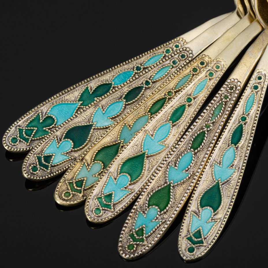 Ложки кофейные, металл, полихромная эмаль по скани, Ленинградское производственное объединение «Русские самоцветы», СССР, 1970 г.