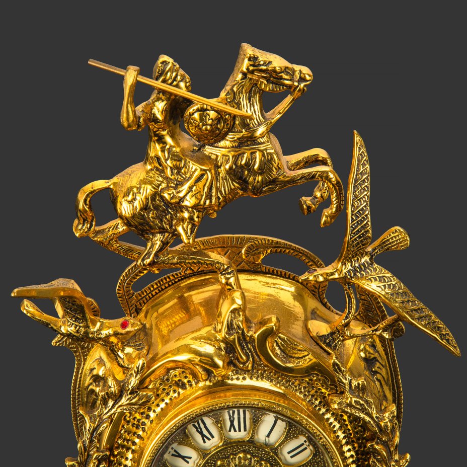 Часы каминные "Всадник", фирма "Virtus", бронза, стекло, Испания, 2000-2020 гг.