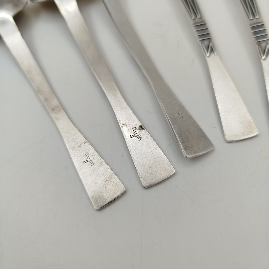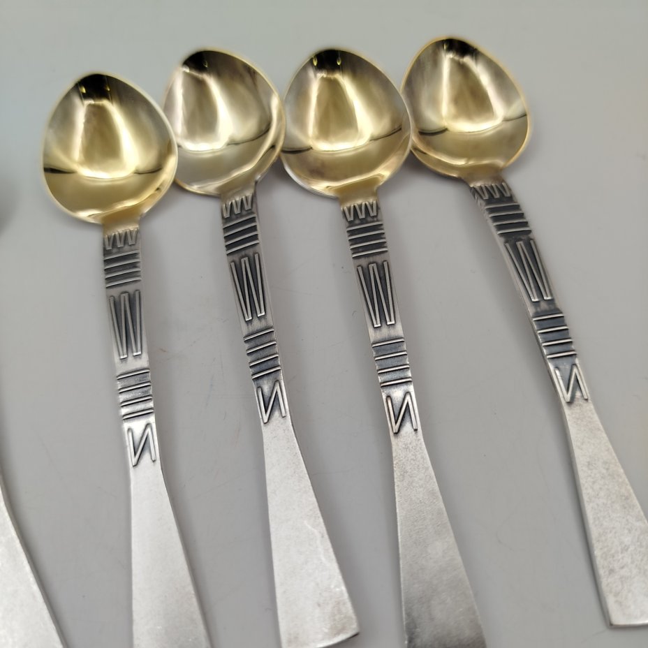 Набор из шести чайных ложек с геометрическим декором, мельхиор (медь-никель), Таллинский ювелирный завод, СССР, 1960-1980 гг.