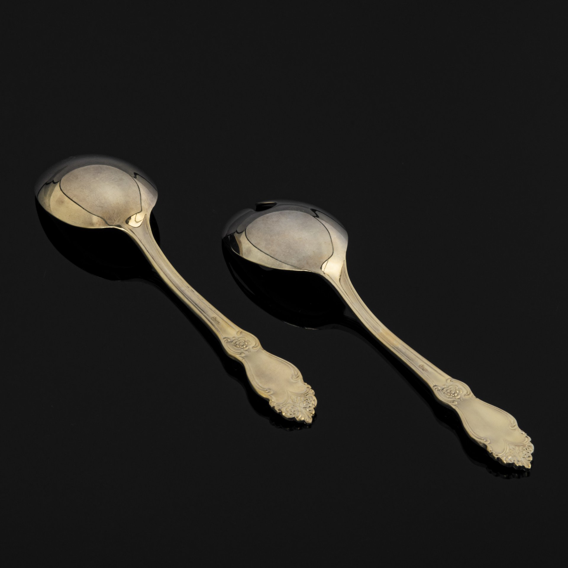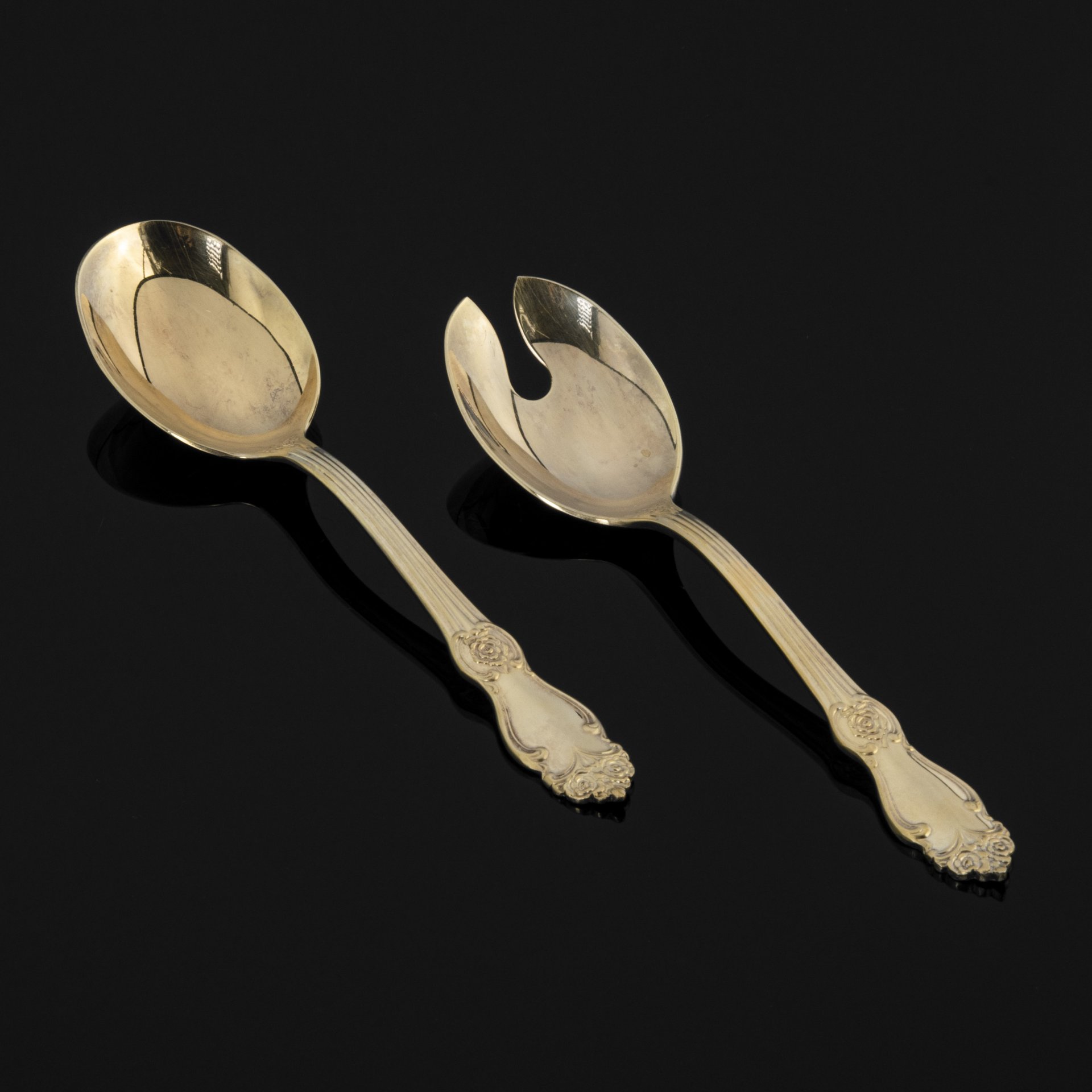 Набор для подачи салата "Серебряная роза", мельхиор (медь-никель), золочение, Кольчугинский завод цветных металлов, Российская Федерация, 1990-2010 гг.