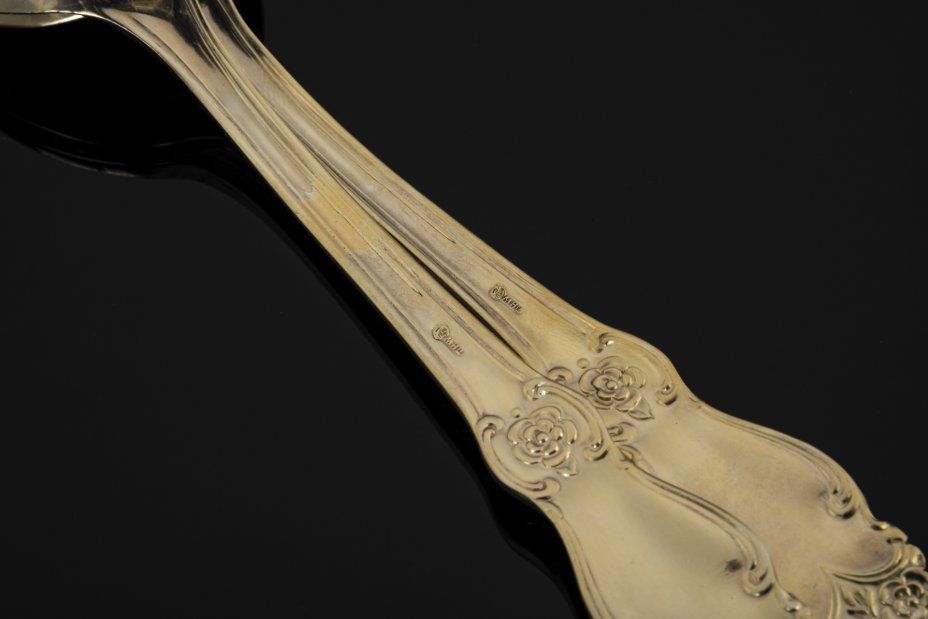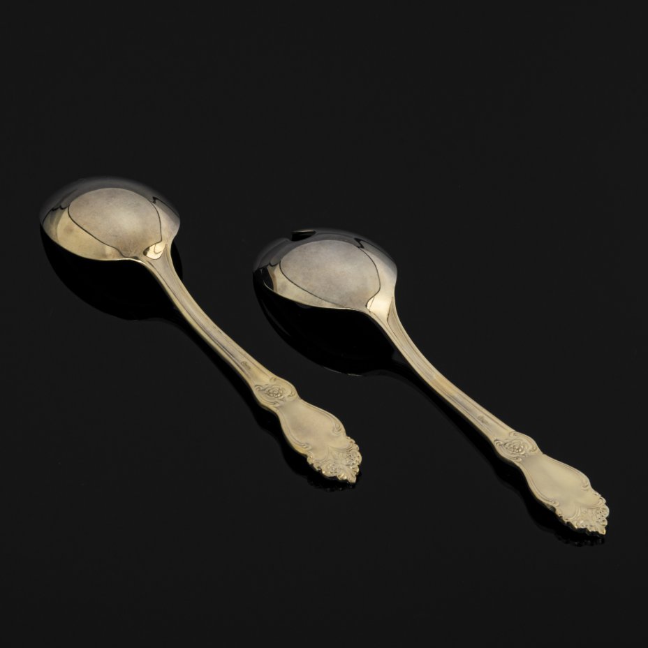 Купить Набор для подачи салата  "Серебряная роза", мельхиор (медь-никель), золочение, Кольчугинский завод цветных металлов, Российская Федерация, 1990-2010 гг.
