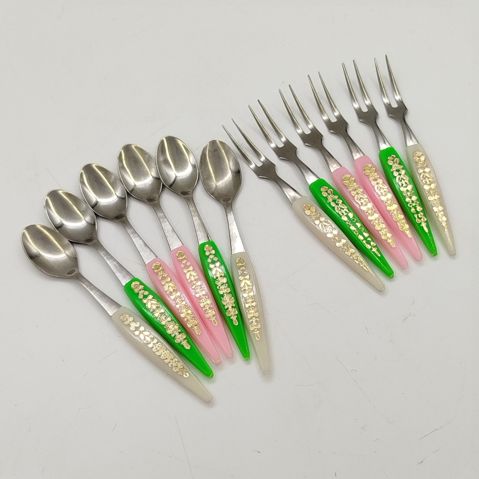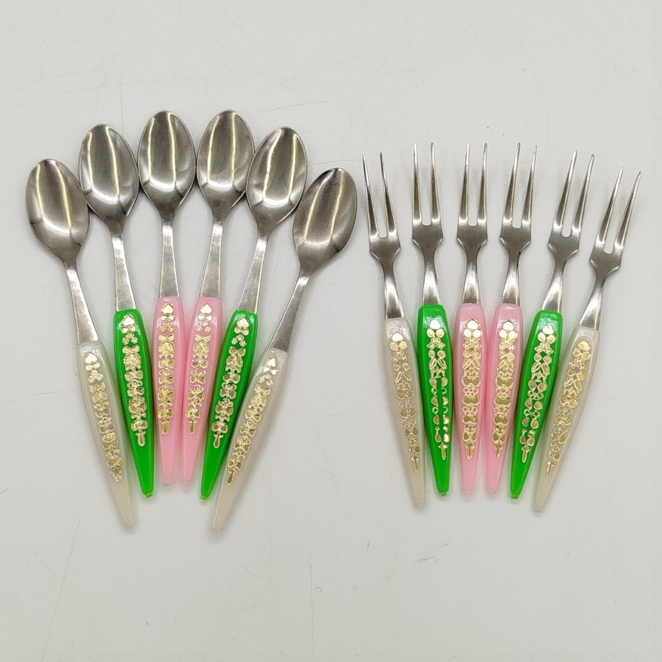 Набор из шести чайных ложек с фигурными черенками, металл, золочение, Таллинский ювелирный завод, СССР, 1970-1990 гг.